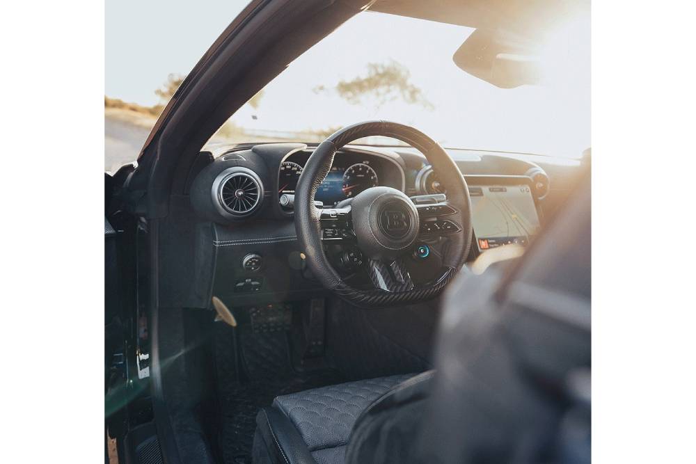 Η Brabus Rocket GTS βασίζεται στην plug-in υβριδική SL 63 S E Performance, αλλά κάπου εκεί τελειώνουν οι ομοιότητες. Η Rocket GTS καταρχάς ντύνεται εξ ολοκλήρου στα ανθρακονήματα εξωτερικά, με το χρώμα Mean Green να καλύπτει τα carbon πάνελ προαιρετικά, ενώ πίσω συναντάμε τη μεγαλύτερη (κυριολεκτικά και μεταφορικά) αλλαγή. Η υφασμάτινη αναδιπλούμενη οροφή της εργοστασιακή SL έχει δώσει τη θέση της σε μια νέα σταθερή (εννοείται carbon), η οποία σε συνδυασμό με τα ανασχεδιασμένα μετόπισθεν μετατρέπουν το γερμανικό roadster σε shooting brake. Μια εκτέλεση που έχουμε να δούμε από τη BMW M Coupe, προσφέροντας μια ατελείωτη «γλουτιαία» περιοχή 1,98 μέτρων!