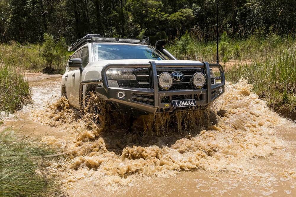 Οι Αυστραλοί αγαπούν ιδιαίτερα το ιαπωνικό μοντέλο και όπως φαίνεται, περίμεναν «στη γωνία» για να το περιλάβουν στις αναβαθμίσεις. Η TJM φορτώνει το J300 καλούδια, με τον νέο προφυλακτήρα στο εμπρός μέρος να κερδίζει όλα τα βλέμματα. Η κατασκευή είναι ειδικά σχεδιασμένη για το νέο Land Cruiser και όχι μόνο φιλοξενεί «σιδεριά», αλλά συνεργάζεται με τους αισθητήρες των αερόσακων και των επικουρικών συστημάτων δίχως να τους μπερδεύει! Το bull bar διατίθεται είτε μαύρο είτε σε όποιο χρώμα επιλέξει ο πελάτης και διαθέτει «εργάτη» με δυνατότητα έλξης 8 τόνων.