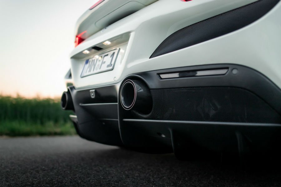 Οι Γερμανοί εξέλιξαν ένα πρόγραμμα αναβάθμισης του V8 των 3.9 λίτρων, που ανεβάζει την απόδοση από τα 720 στα 787 άλογα και την ροπή στα 882 Nm (από 770). Ο χρόνος για την επιτάχυνση στα 100 χλμ./ώρα από στάση μειώνεται κατά 1 δέκατο (2,7 δλ.), ενώ η τελική ξεπερνάει τα 340 χλμ./ώρα. Το ίδιο αναφέρει και η Ferrari για την εργοστασιακή F8, οπότε το πόσο πέρα από τα 340 φτάνει η βελόνα του κοντέρ στις δυο Tributo παραμένει μυστήριο. Μαζί με τον νέο εγκέφαλο, η Novitec προσφέρει ολόσωμη εξάτμιση για βελτίωση της ηχητικής πανδαισίας. Ακούστε και μόνοι σας!