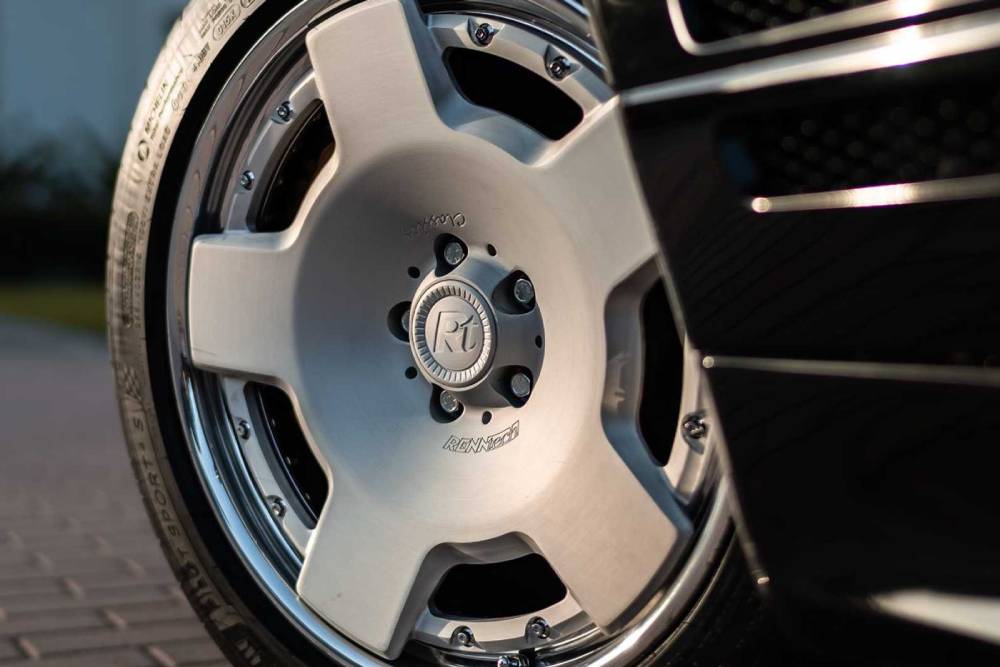 Οι μετατροπές των Γερμανών δεν σταμάτησαν εκεί, καθώς αναβάθμισαν σημαντικά και τη μετάδοση. Το εργοστασιακό αυτόματο 4άρι κιβώτιο αντικαταστάθηκε από ένα μεταγενέστερο 5 σχέσεων, συνοδευόμενο από μπλοκέ διαφορικό OS Giken. Η ανάρτηση δεν θα μπορούσε να μείνει ανέγγιχτη, καθώς πλέον καλείται να διαχειριστεί 207 άλογα και 372 Nm παραπάνω. Απολύτως δικαιολογημένη η αντικατάστασή της από πλήρως ρυθμιζόμενο κιτ, όπως και η παρουσία κεραμικών δισκόφρενων της AMG πίσω από τις 19άρες ζάντες της Renntech, οι οποίες με τη σειρά τους ντύνονται με ελαστικά Michelin Pilot Sport 4S διάστασης 235/45 εμπρός – 285/35 πίσω.
