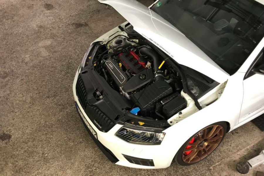Ο Γερμανός βελτιωτής RM-Performance όχι μόνο θεωρεί πως είναι εύκολο το παραπάνω «πάντρεμα», αλλά πιστεύει πως είναι τόσο εύκολο ώστε να προτιμήσει την μετατροπή μιας λευκής Octavia Combi σε «τιμωρό» των Audi RS! Ο 2.5 λτ. TFSI των 400 ίππων από το RS 3 πήρε θέση κάτω από το καπό, αρχικά στέλνοντας την δύναμη στους εμπρός τροχούς.