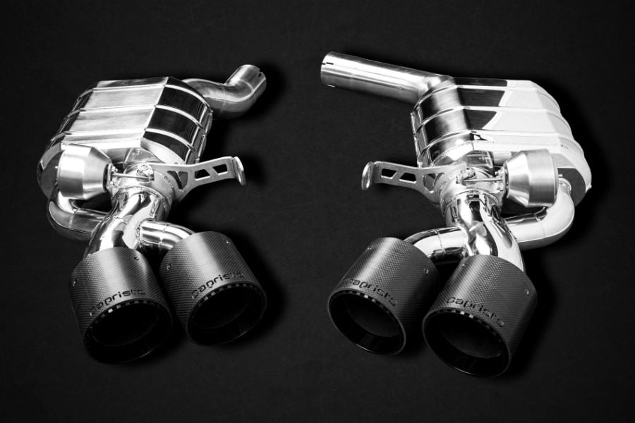 Από εκεί και πάνω, οι απαιτητικοί θα πρέπει να απευθυνθούν στο 4ο στάδιο. Οι δυο τουρμπίνες αντικαθίστανται με μεγαλύτερες και ενισχυμένες, εκτινάσσοντας την ιπποδύναμη στα 965 άλογα και την ροπή στα 1.250 Nm! Για αυτούς που θέλουν να κουνάνε το δάχτυλο σε hypercars, αφαιρούνται καταλύτες-σιλανσιέ και η απόδοση ξεπερνάει το πολυπόθητο «1000». Για την ακρίβεια, φτάνει στα 1.010 άλογα και τα 1.250 Nm! Συγκριτικά, η Veyron 16.4 αποδίδει 1.001 ίππους και το ίδιο ποσό ροπής, αλλά με ακριβώς το διπλό μοτέρ: 8.0 λίτρα, 4 τούρμπο, 16 κύλινδροι!