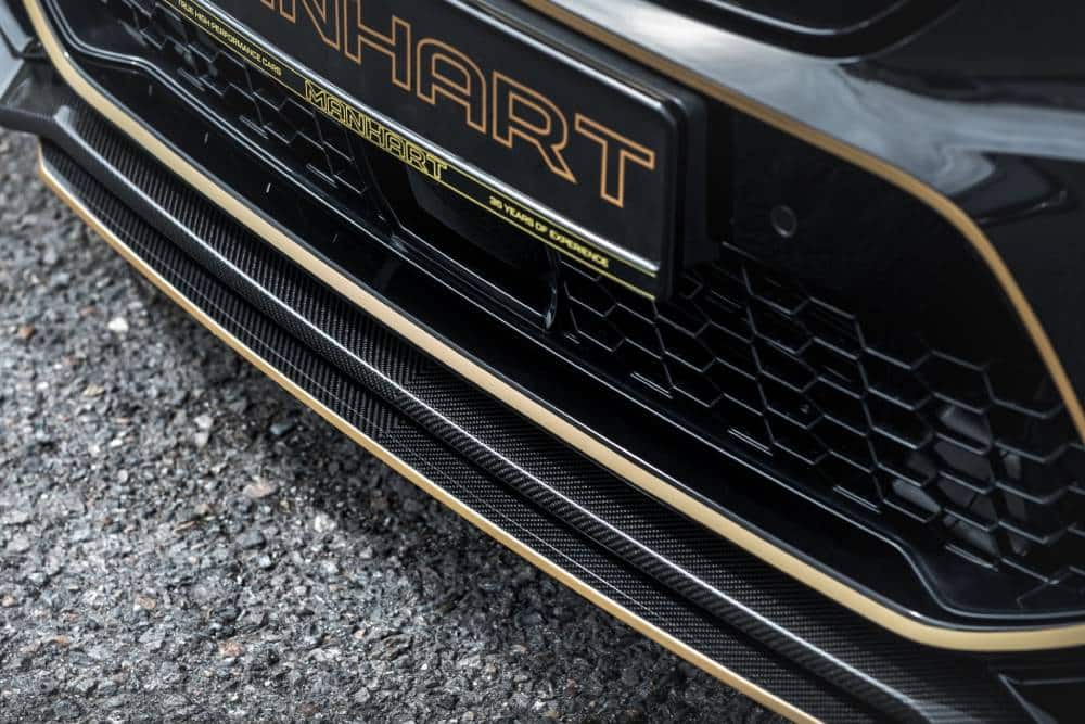 Στο εσωτερικό κυριαρχούν οι δερμάτινες επενδύσεις και το χρυσαφί χρώμα στο κέντρο των καθισμάτων, αλλά και το άνω μέρος των θυρών. Τα ανθρακονήματα επίσης δίνουν το παρόν, σε ταμπλό και κεντρική κονσόλα, ενώ το σήμα της Manhart δεσπόζει στο κέντρο του τιμονιού.
