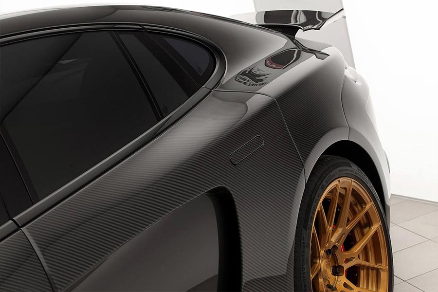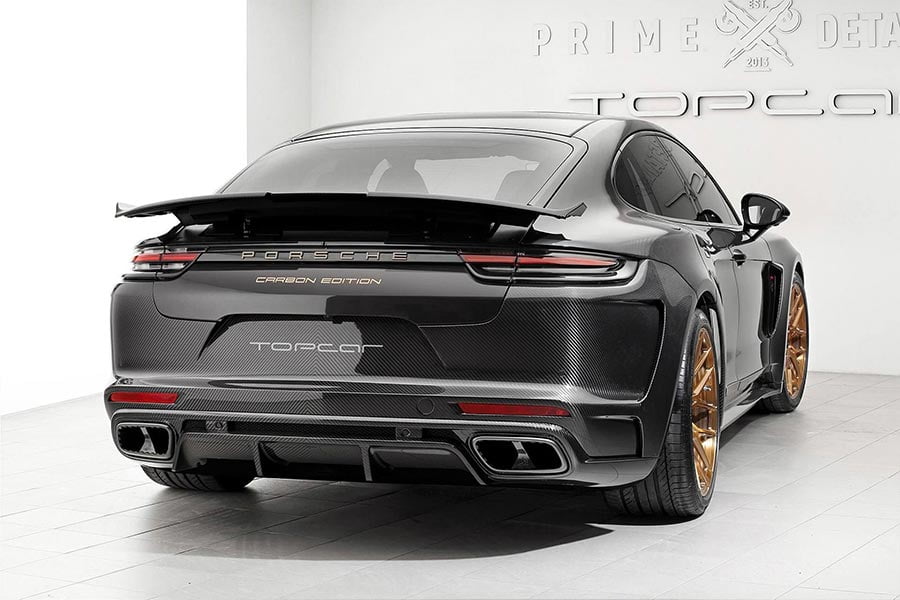 Στη νέα γενιά της έκδοσης GTR Carbon Edition, έχει διατηρηθεί ο αρχικός χαρακτήρας της «απλής» Porsche Panamera αλλά όλα τα υπόλοιπα εξωτερικά πάνελ είναι καλυμμένα με ανθρακονήματα. Μιλάμε για ένα νέο μπροστινό προφυλακτήρα, νέα μπροστινά φτερά, νέο καπό με μεγάλους αεραγωγούς, καλύμματα καθρέφτη, μερικώς καλυμμένα πίσω φωτιστικά σώματα, σχεδόν αόρατα πίσω χερούλια, πίσω αεροτομή και γενικά carbon παντού. Ακόμη και οι πινακίδες κυκλοφορίας είναι από ίνες άνθρακα.