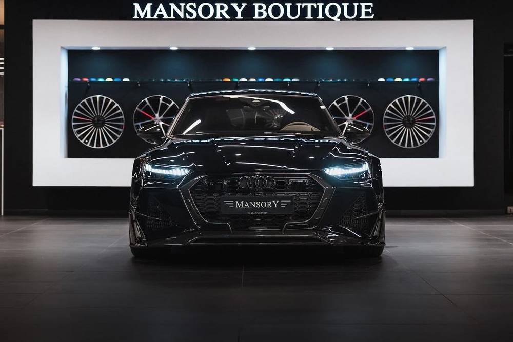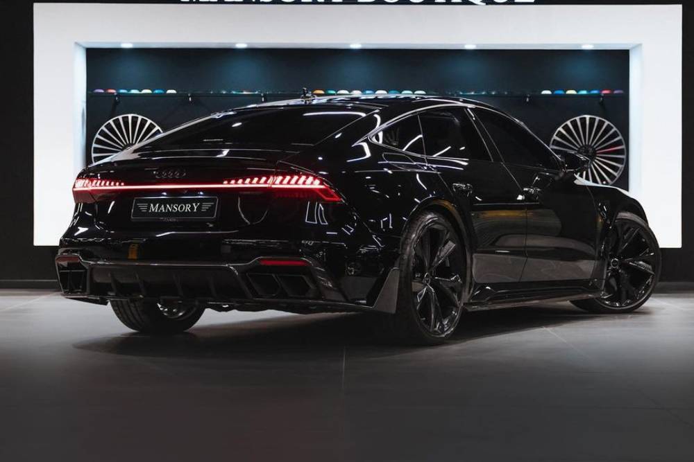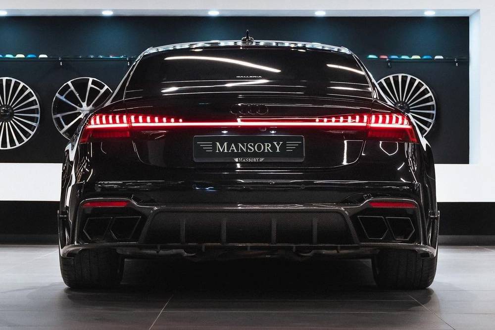 Όλως παραδόξως, το σχήμα του RS 7 ενέπνευσε εγκράτεια στη Mansory και κατάφερε να γλιτώσει από τις ακρότητες του Γερμανού βελτιωτή. Κόντρα σε ό,τι έχουμε συνηθίσει, ακόμα και ενάντια στο DNA της εταιρίας, το πακέτο που ετοίμασαν για το κουπέ-σεντάν από το Ίνγκολσταντ όχι μόνο δεν το καταστρέφει οπτικά, αλλά το αναβαθμίζει! Ένα «τόσο-όσο» αεροδυναμικό πακέτο από ανθρακονήματα περιβάλλει το αμάξωμα, μέσω του splitter στον εμπρός προφυλακτήρα, τον διαχύτη στον πίσω και τα side skirts, ενώ εντύπωση προκαλεί η παντελής έλλειψη spoiler. Οι 23άρες ζάντες συνοδεύονται από φινίρισμα carbon (δίχως να είναι ανθρακονημάτινες), η ανάρτηση εμφανίζεται χαμηλωμένη και οι πολύγωνες απολήξεις των τετραπλών απολήξεων ολοκληρώνουν τις ιδιαίτερα εύστοχες παρεμβάσεις των Γερμανών.