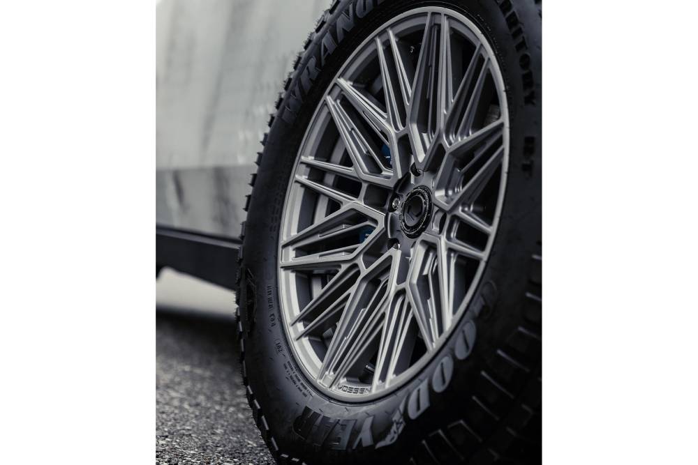 Έμπνευση της Signature Customs από τη Φλόριντα, ντύνεται σε έναν εντυπωσιακό συνδυασμό «ντεγκραντέ» άσπρου-μαύρου και απαλές πινελιές γαλάζιου σε επιλεγμένα σημεία – ακριβώς εκεί που διχοτομούνται οι δυο αποχρώσεις, σαν διαχωριστική γραμμή. Ακόμα πιο φαντεζί το κυψελοειδές μοτίβο που εφαρμόζεται στο αμάξωμα του «Κυβερνοφορτηγού», το οποίο πλαισιώνεται από μια ιδιαίτερα καλαίσθητη τετράδα Vossen (είτε άσπρες, είτε ανθρακί). Οι αλλαγές δεν σταματούν στις ειδικά εξελιγμένες μεμβράνες, αλλά επεκτείνονται και σε ανάρτηση-φρένα.