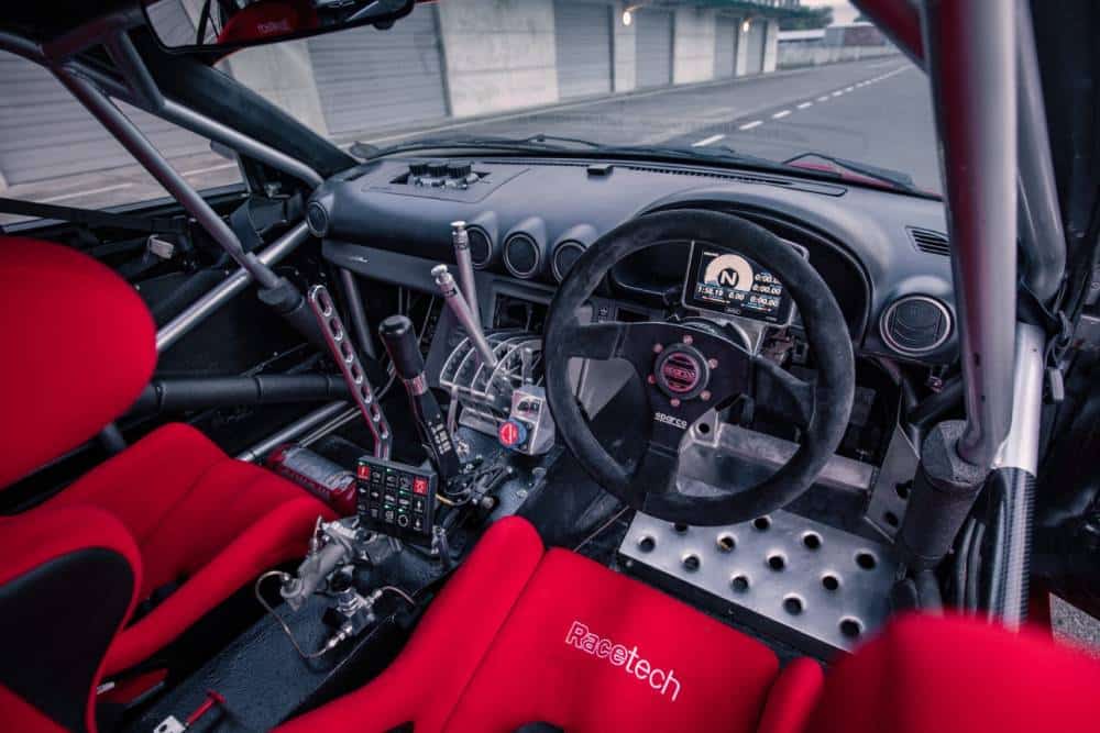 Ο Νεοζηλανδός αγόρασε την τρακαρισμένη Ferrari έναντι μόλις 1.500 τοπικών δολαρίων, που δεν ισοδυναμούν ούτε με 900 ευρώ. Στη συνέχεια ξεκίνησε η διαδικασία αποκατάστασης, με στυλ… ιαπωνικό. Το διαλυμένο εμπρός μέρος αντικαταστάθηκε από τη μούρη ενός Silvia S14, ενώ ο επίσης βαρέως χτυπημένος V12 έκανε χώρο στο μηχανοστάσιο για έναν ατμοσφαιρικό διρότορο Wankel 13B άγνωστης απόδοσης. Το γεγονός, όμως, ότι έχουμε ρυθμιζόμενη ανάρτηση, τροχούς από Porsche 911 GT3 Cup, υδραυλικό χειρόφρενο, 6άρι σειριακό κιβώτιο, roll cage, «απλώστρα» πίσω και κυρίως, το πώς ακούγεται ο κινητήρας, μάς κάνει να πιστεύουμε πως κάτω από το καπό μελλοντικά ενδεχομένως να φωλιάζουν περισσότερα από τα 442 άλογα του original V12.