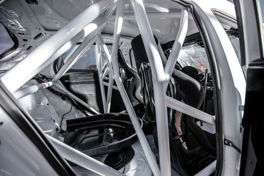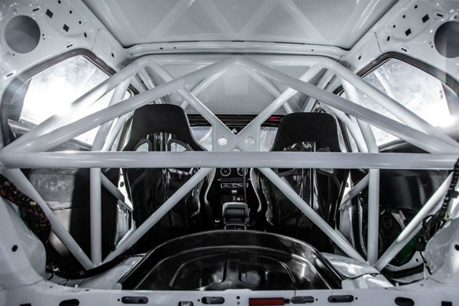 Αρχής γενομένης από το αμάξωμα, το οποίο διαθέτει εντελώς ανασχεδιασμένους προφυλακτήρες και φουσκωμένα φτερά, συνοδευόμενα από το κατάλληλο αεροδυναμικό πακέτο και 18άρες ζάντες αλουμινίου. Στο εσωτερικό το μόνο που θυμίζει πολιτικό Audi, είναι το ταμπλό και η κεντρική κονσόλα, που φιλοξενεί τον εργοστασιακό επιλογέα του RS 3. Πέραν αυτών, τα πάντα έχουν αφαιρεθεί. Το αγωνιστικό roll cage, προδιαγραφών FIA, φροντίζει για την ασφάλεια του πληρώματος και την ενίσχυση της ακαμψίας του πλαισίου, το υδραυλικό χειρόφρενο για την τοποθέτηση στις κλειστές στροφές και τα μπάκετ της Recaro για την παραμονή οδηγού-συνοδηγού στις θέσεις τους.