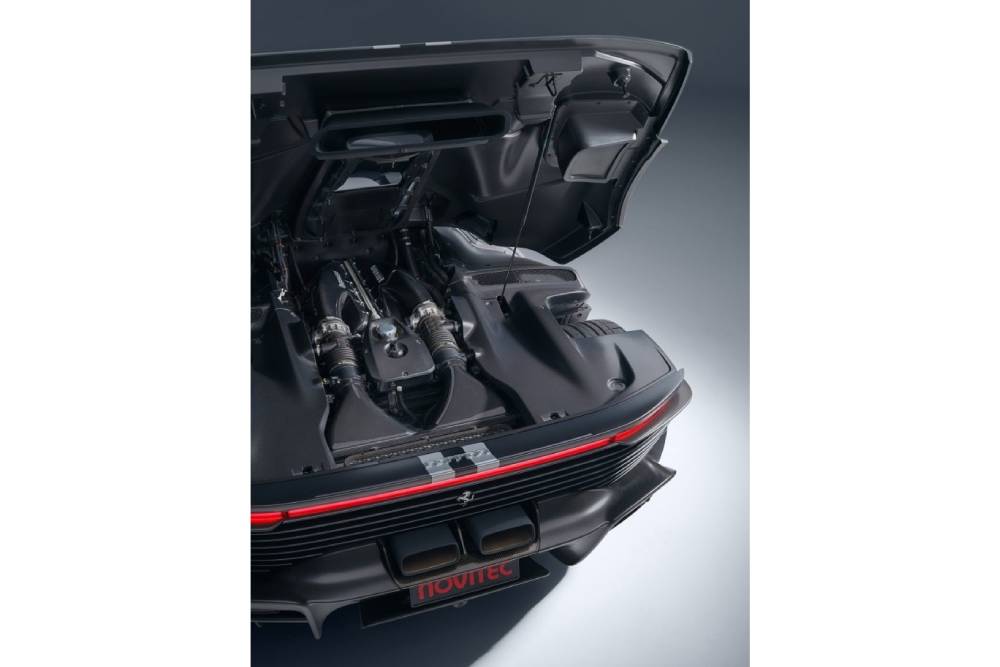 Στα μηχανικά μέρη, ο ισχυρότερος μη υβριδικός κινητήρας όλων των εποχών για το Μαρανέλο αποκτά νέα εξάτμιση και επαναπρογραμματισμένο εγκέφαλο. Ο ατμοσφαιρικός V12 των 6.496 κ.εκ., που πρωτοείδαμε στην 812 Competizione, «τσιμπάει» άλλα 28 άλογα και πλέον φτάνει τους 868 ίππους στις 9.250 σ.α.λ. (κόφτης σταθερά στις 9.500 σ.α.λ.)! Ελαφρώς κερδισμένη και η ροπή, με 705 Nm (αντί 697) στις 7.250 σ.α.λ. Η ισχύς εξυπακούεται πως καταλήγει στους πίσω τροχούς, μέσω 7τάχυτου αυτόματου διπλού συμπλέκτη και ηλεκτρονικά ελεγχόμενου μπλοκέ διαφορικού. Οι επιδόσεις λογικά παραμένουν στα επίπεδα της εργοστασιακής Daytona SP3, η οποία επιταχύνει στα πρώτα 100 χλμ./ώρα μέσα σε 2,85 δλ., στο 0-200 χλμ./ώρα σε 7,4 δλ. και ξεπερνά τα 340 χλμ./ώρα τελικής – επιδόσεις παρεμφερείς της 812 Competizione. Από ήχο πάντως, ειδικά κατόπιν παρεμβάσεων Novitec, δεν μπορεί να συγκριθεί με καμία Ferrari, περιλαμβανομένων πολλών αγωνιστικών.