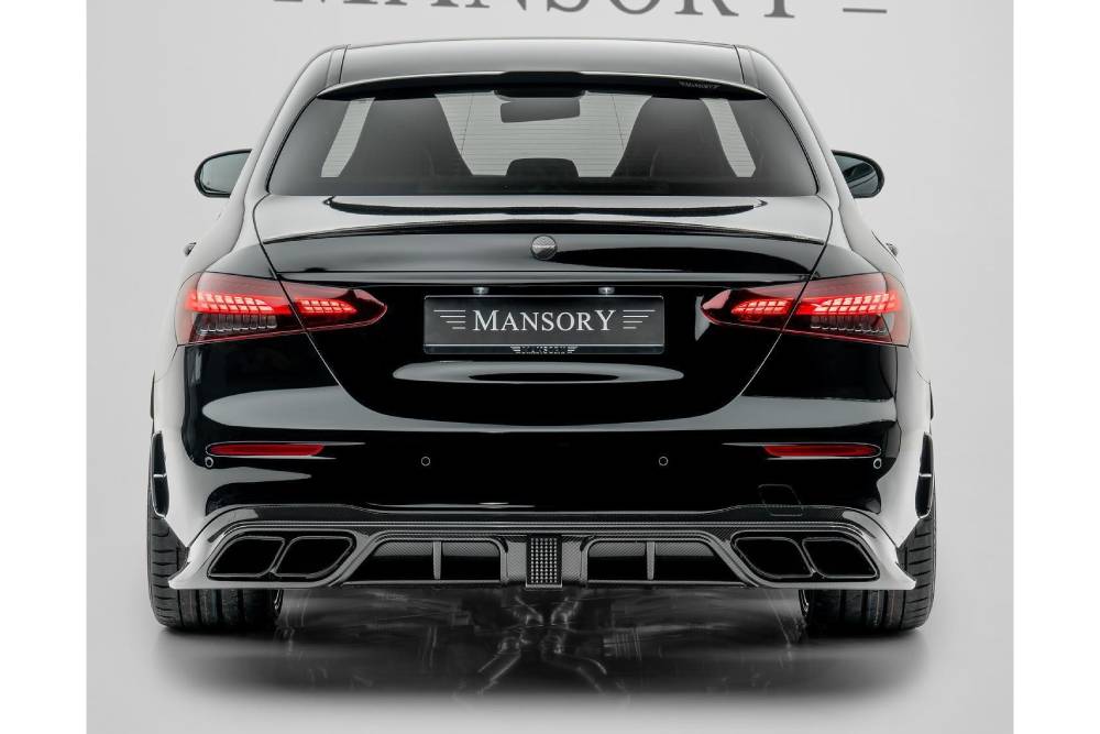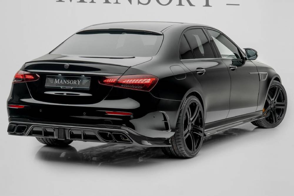 Το υπερ-σεντάν από τη Στουτγκάρδη χαρακτηρίζεται από το διακριτικό -για τα δεδομένα της Mansory- ανθρακονημάτινο body kit, που αποτελείται από splitter και έξτρα στοιχεία στον εμπρός προφυλακτήρα, πλαϊνές ποδιές, μεγαλύτερο διαχύτη και μια ακόμα πιο ήπιων τόνων αεροτομή. Οι 21άρες ζάντες και τα σήματα της Mansory εντείνουν την αίσθηση διαφοροποίησης από την εργοστασιακή E 63 S, αλλά σε γενικές γραμμές μιλάμε ίσως για το πιο κομψό πακέτο που έχει παρουσιάσει ο βελτιωτής από το Μπραντ. Το total black παρουσιαστικό «σπάει» μόνο από τις πορτοκαλί δαγκάνες των φρένων, οι οποίες υποδηλώνουν τη μεγαλύτερη ισχύ που καλούνται να χαλιναγωγήσουν.