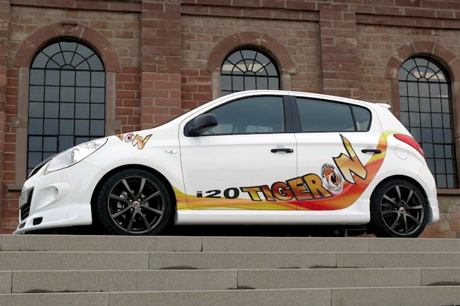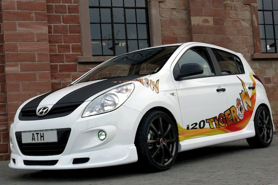 Το i20 των φωτογραφιών απευθύνεται στους πιο απαιτητικούς, που θέλουν να δηλώνουν το γκάζι. Διαθέτει body kit της Tigeron, αποτελούμενο από προσθήκες στον εμπρός και πίσω προφυλακτήρα, νέα φώτα ομίχλης, πλαϊνές ποδιές, αυτοκόλλητα, αεροτομή και ελατήρια χαμηλώματος της H&R. Το συνολικό κόστος ανέρχεται στις 1.050 ευρώ, ενώ μαζί με τα αυτοκόλλητα φτάνει τις 1.428 ευρώ. Η τιμή για το «τσιπάρισμα» του κινητήρα ανέρχεται στα 399 ευρώ, φτάνοντας τα 1.827 στο σύνολο. Αριθμός καθόλα λογικός, δεδομένης της ενίσχυσης του i20 τόσο εμφανισιακά, όσο και μηχανικά.
