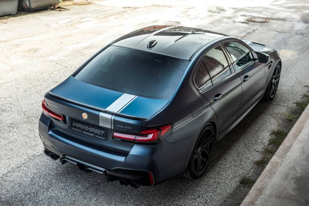 Η εμφάνιση χαρακτηρίζεται από το χρώμα Moonlight, που είναι αποτέλεσμα μεμβρανών, το νέο καπό και τις ζάντες των 21 ιντσών. Ένα ειδικά εξελιγμένο coilover kit της KW φροντίζει τόσο για το παρουσιαστικό, όσο και το στήσιμο του αυτοκινήτου. Εντύπωση προκαλεί η απουσία του κλασικού συνδυασμού μαύρου χρώματος-χρυσαφί λωρίδων στο αμάξωμα, που χαρακτηρίζει τις δημιουργίες της Manhart. Πιθανώς ενδεικτικό του πόσο ιδιαίτερη είναι η MH5 GTR, όπως ονομάζεται η βελτιωμένη M5 CS.