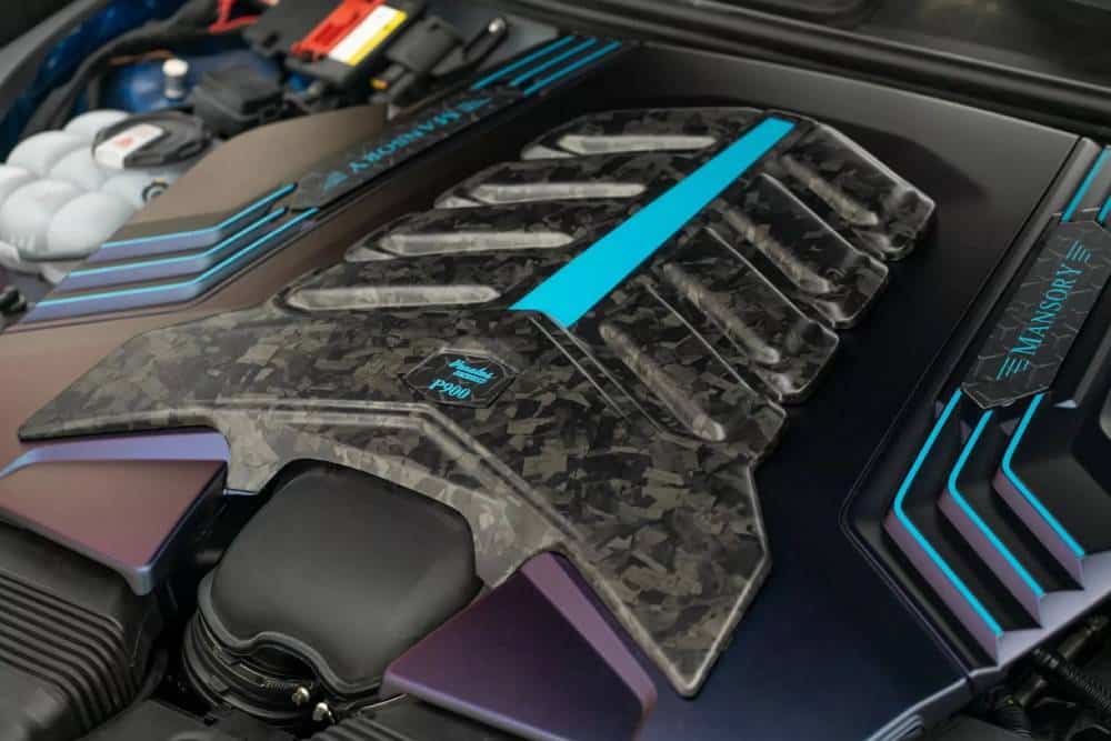 Το τελικό αποτέλεσμα τους δικαιώνει, καθώς μαζί με τα φουσκωμένα πάνελ που βρίσκονται στη θέση των πίσω θυρών, η δίθυρη πια Urus δεν δείχνει παράταιρη ή πρόχειρη σαν μετατροπή. Ο καταιγισμός ανθρακονημάτινων αεροδυναμικών βοηθημάτων, με πρωταγωνιστή τον πελώριο διαχύτη και την τριγωνική/τριπλή εξάτμιση στο κέντρο του, δεν σταματά να κρατά απασχολημένο το μάτι. Το ίδιο ισχύει για το εσωτερικό, όπου τα πάντα καλύπτονται από τιρκουάζ δέρμα και ανθρακονήματα.
