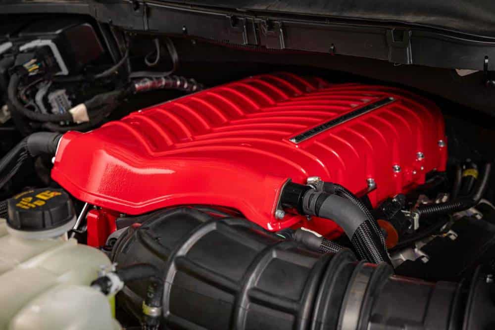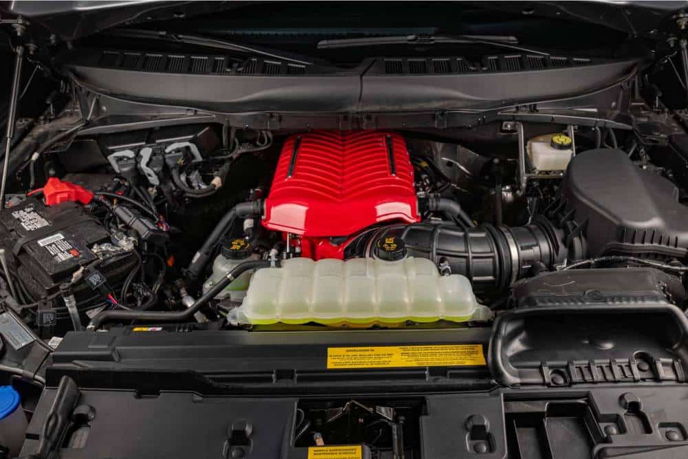 Εκεί που ο εργοστασιακά κομπρεσοράτος 5.2 V8 αποκτά έναν ακόμα μεγαλύτερο μηχανικό υπερσυμπιεστή (στη θέση του «μαμά») 3.8 λίτρων, εκτινάσσοντας την ισχύ πάνω από τα 900 άλογα! Η Shelby δεν αναφέρει ακριβή ιπποδύναμη, ούτε ροπή, αλλά σίγουρα τα 868 Nm του απείραχτου Raptor R αποτελούν παρελθόν. Αυτό που προσδιορίζει, και παράλληλα προκαλεί δέος, είναι ότι τα 900+ αυτά άτια παράγονται με το «ζουμί» 93 οκτανίων που έχουν για βενζίνη στην Αμερική. Με τη δική μας 98άρα, ή ακόμα καλύτερα κάποια 100άρα/100άρα plus, η απόδοση δεν αποκλείεται να φτάνει σε τετραψήφια νούμερα!