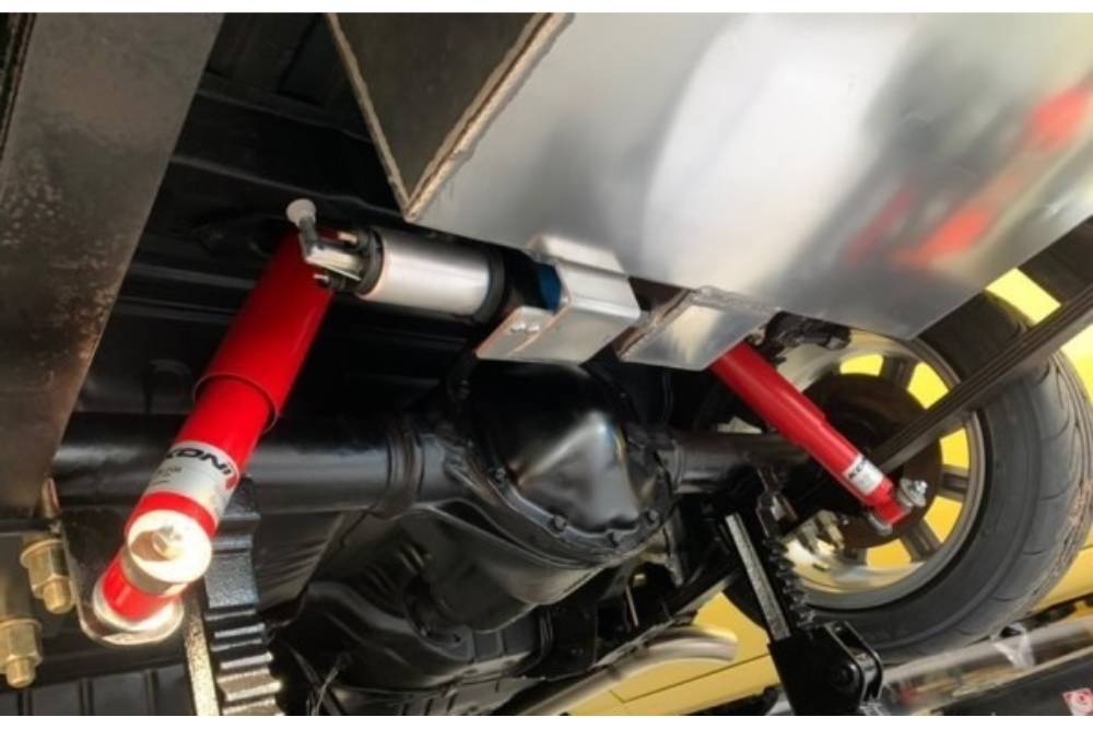 Τη μεταφορά της ισχύος στους πίσω τροχούς αναλαμβάνουν το 6άρι χειροκίνητο κιβώτιο από Lexus IS200, σε συνεργασία με μπλοκέ διαφορικό από Nissan Skyline R31! Η ανάρτηση αποτελείται από coilover kit της Techno Toy Tuning εμπρός και ρυθμιζόμενα αμορτισέρ της Koni πίσω, τα φρένα είναι της Willwood, ενώ οι 15άρες Performance Superlite ζάντες περιβάλλονται από ημισλίκ ελαστικά! Προσθέστε σε όλα αυτά ένα βάρος που μετά βίας φτάνει τον 1 τόνο και έχετε ένα πακέτο που «ξυρίζει».