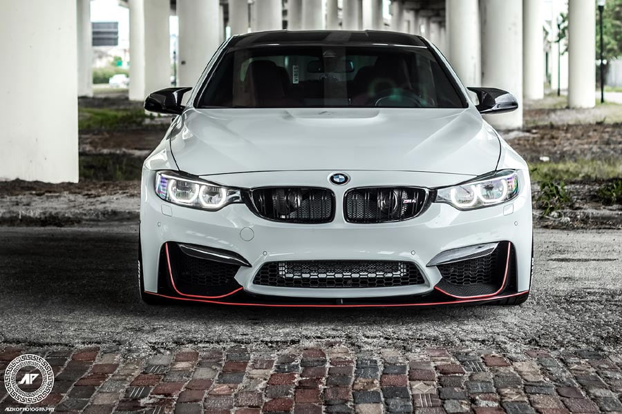 Ένας από αυτούς είναι και ο ιδιοκτήτης της πρωταγωνίστριάς μας, που ποζάρει στον φακό του AlekoPhotography στην τοποθεσία Tampa Bay της Φλόριντα, επιδεικνύοντάς μας τα κάλλη της. Αυτή η κολασμένη BMW M4 λοιπόν, εφοδιάζεται με δύο τούρμπο της PURE Stage 2, τα οποία σε συνδυασμό με την εξάτμιση τιτανίου από την Akrapovic φτάνουν την ιπποδύναμη στους 712 ίππους (στον τροχό, όπως ισχυρίζεται ο ιδιοκτήτης). Όπως είναι λογικό η μετατροπή αυτή έκανε αναγκαία και την ύπαρξη νέου συμπλέκτη, που είναι της SSP Spec R Clutch, ενώ σειρά πήρε ο άξονας μετάδοσης ο οποίος είναι της Diversified Shaft Solutions. Τέλος, η ανάρτηση είναι KW Variante3 coil over φυσικά.