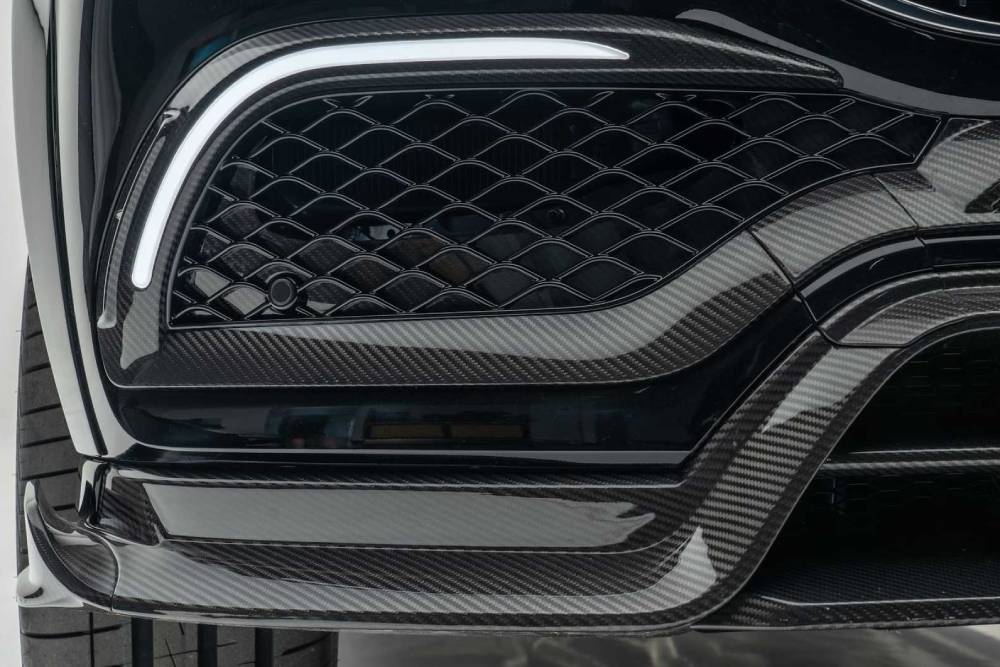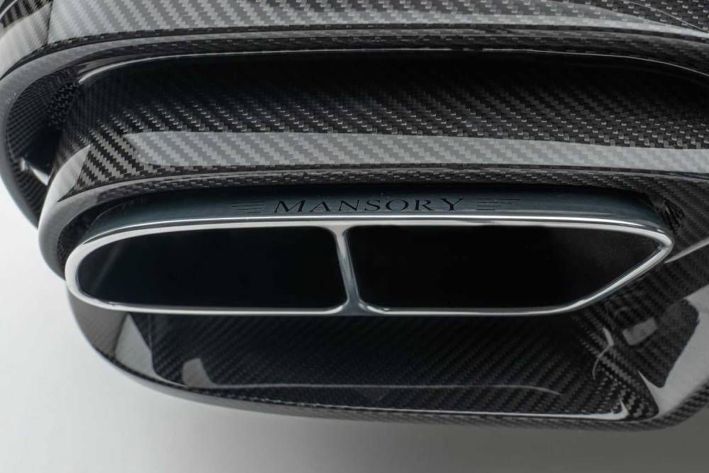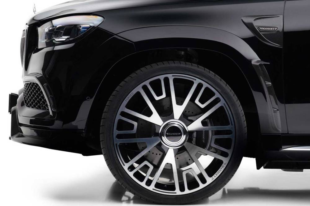 Ως είθισται με τις προτάσεις του Γερμανού βελτιωτή, το αμάξωμα πλέον φέρει αρκετά εξαρτήματα από ανθρακονήματα και απέχει σημαντικά από τα εργοστασιακά στάνταρ. Σε σχέση με άλλα Mansory, βέβαια, η GLS την έχει γλιτώσει σε μεγάλο βαθμό. Το bull bar μπροστά είναι αμφιβόλου αισθητικής, αλλά αεροτομές και ακραία αεροδυναμικά βοηθήματα απουσιάζουν. Υπάρχουν splitter, ποδιές, spoiler, διαχύτης και φουσκώματα στα φτερά (όλα από ανθρακονήματα), όμως για τα δεδομένα της Mansory οι παρεμβάσεις χαρακτηρίζονται συγκρατημένες. Καλαίσθητες και οι 24άρες ζάντες, που ολοκληρώνουν το οπτικό πακέτο.