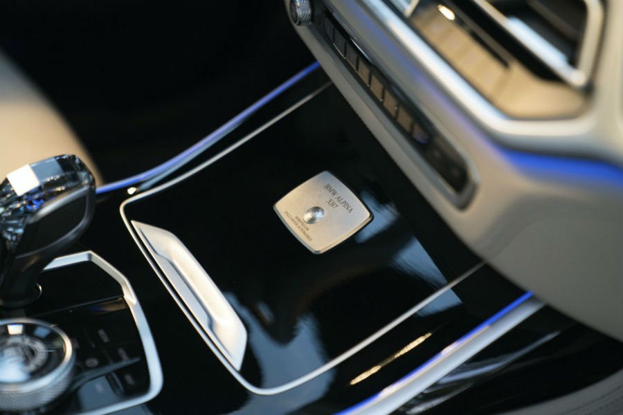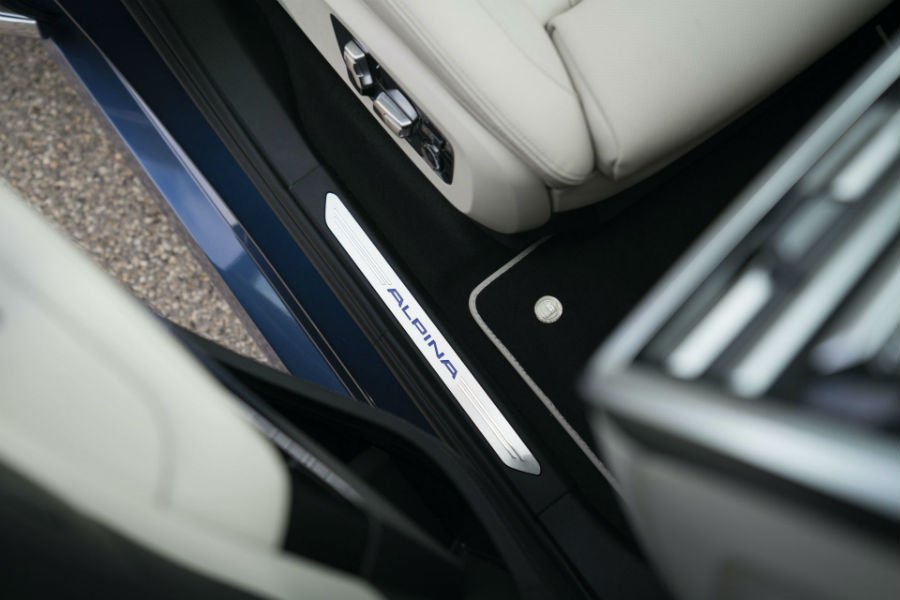 Στο εσωτερικό, συναντάμε δερμάτινες επενδύσεις Merino ή Lavalina, νέο τιμόνι, σήματα της Alpina, κρυστάλλινο επιλογέα στο iDrive, φωτιζόμενο για αυτόν του αυτόματου κιβωτίου και επίσης φωτιζόμενα μαρσπιέ, εννοείται με το λογότυπο της εταιρίας. Επιπλέον, οι επενδύσεις στο ταμπλό και τις πόρτες είναι από ξύλο μυρτιάς, piano black βερνίκι ή walnut anthracite από ξύλο καρυδιάς