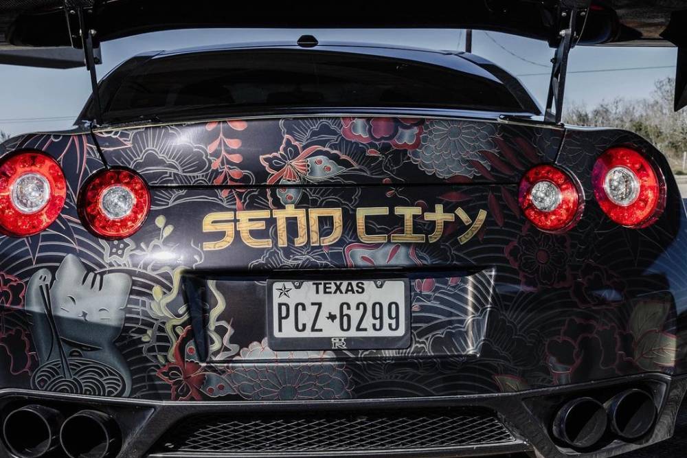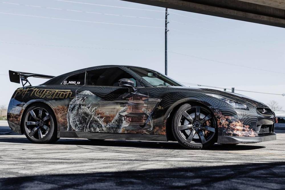 Η τεράστια υπερ-σαύρα έχει «δανείσει» το όνομά της στο κορυφαίο Nissan, όμως αυτό που βλέπουμε δανείζεται κι άλλα στοιχεία. Όπως την εμφάνιση! Στα πλαϊνά του αμαξώματος συναντάμε τον πιο γνωστό εκπρόσωπο της ιαπωνικής μυθολογίας, ενώ το αμάξωμα συνολικά βρίθει αναφορών στην κουλτούρα της Χώρας του Ανατέλλοντος Ηλίου. Το σχέδιο προέρχεται από την Corsa Auto Design και η τοποθέτηση των μεμβρανών έγινε από την MOB Auto Boutique. Εκτός από την εμφάνιση, το «Γκοτζιλέ» GT-R διαθέτει aftermarket ρυθμιζόμενη αεροτομή και νέα εξάτμιση.