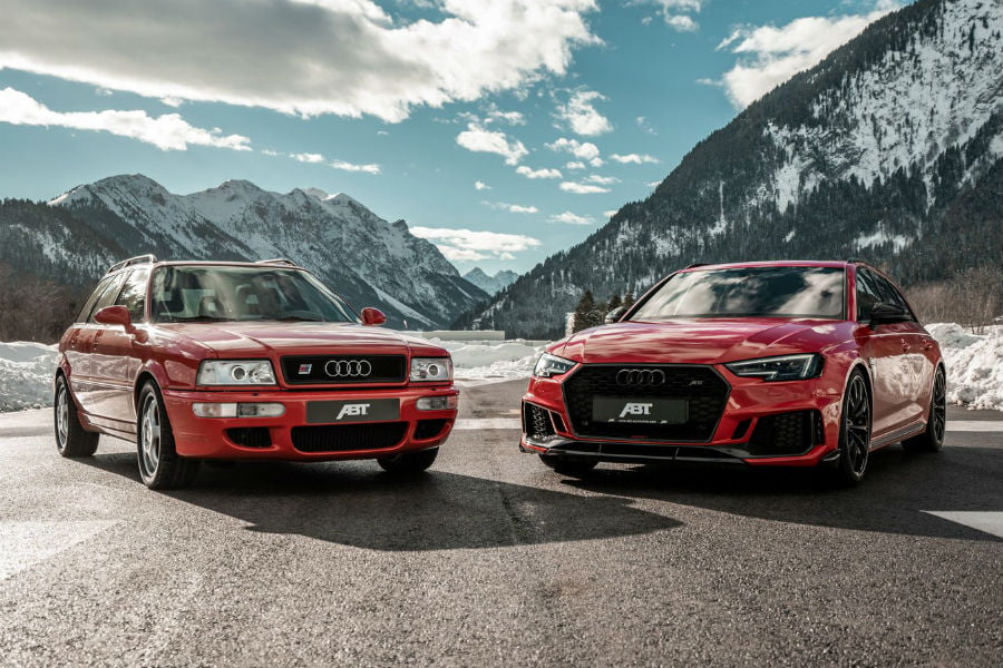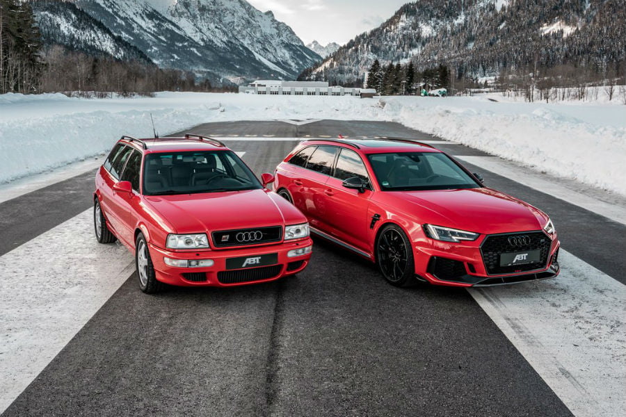 Το κατά 26 χρόνια νεότερο RS 4, δεν αντιμετωπίζει πρόβλημα ούτε στην εργοστασιακή μορφή του. Οι 450 ίπποι του twinturbo V6 TFSI των 2.9 λίτρων και το 8τάχυτο αυτόματο κιβώτιο, σε συνδυασμό με την ηλεκτρονικά ελεγχόμενη τετρακίνηση, εκτοξεύουν το γερμανικό estate στα 100 χλμ./ώρα από στάση σε 4,1 δλ. και φτάνουν εν ριπή οφθαλμού στα ηλεκτρονικά περιοριζόμενα 250 χλμ./ώρα της τελικής (που μπορούν να γίνουν 280, με το Performance Pack). Η πρόταση της ABT είναι παρόμοιας φιλοσοφίας με το RS 2 (νέα εξάτμιση και εγκέφαλος), με την απόδοση να φτάνει τα 530 άλογα και τα 690 Nm ροπής.