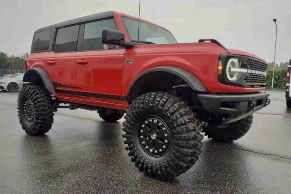 Ένα ολοκληρωμένο κιτ με νέους άξονες, συν τις απαραίτητες ρυθμίσεις στο σασί, προσθέτει 130 χλστ. απόστασης από το έδαφος, σε όσα έχει ήδη η εκάστοτε έκδοση του Bronco. Η βασική, δηλαδή, φτάνει κατευθείαν στα 330 χλστ. κι έρχεται «μια η άλλη» με το Raptor. Το Bronco Wildtrak κανονικά απέχει από κάτω 311 χλστ., φτάνοντας κατόπιν μετατροπής στο απίστευτο ύψος των 441 χλστ. – 41 ολόκληρα εκατοστά απόστασης από το έδαφος, κοινώς! Για το δε Raptor, το οποίο πάντως δεν αναφέρεται στις επιλογές της Werewolf Tech, το κένο μεταξύ μαρσπιέ και εδάφους θα μπορούσε να φτάσει στα 475 χλστ.!