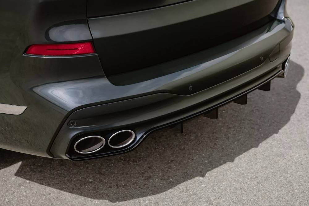 Το μεγαλύτερο μοντέλο στην γκάμα της Alpina διαθέτει πιο έντονο αεροδυναμικό πακέτο σε σχέση με την X7 M60i (στην οποία βασίζεται), που εκπροσωπείται από μεγαλύτερο splitter στον εμπρός προφυλακτήρα, διαχύτη στον πίσω με τετραπλές απολήξεις της εξάτμισης και πλαϊνές ποδιές. Οι πολυάκτινες Alpina Classic ζάντες των φωτογραφιών φτάνουν στις 23 ίντσες και διαθέτουν φινίρισμα Aluminium Satin, σε ελαστικά διάστασης 285/35 εμπρός και 325/35 πίσω, όμως υπάρχει και η πιο λογική επιλογή των 21 ιντσών σε λάστιχα 285/45 που προσφέρεται στάνταρ. Όποιους τροχούς κι αν επιλέξει ο αγοραστής, 4πίστονες δαγκάνες εμπρός – πίσω θα έχει για να εφαρμόζουν στις δισκόπλακες – «ταψιά» (394 χλστ. εμπρός – 399 χλστ. πίσω).