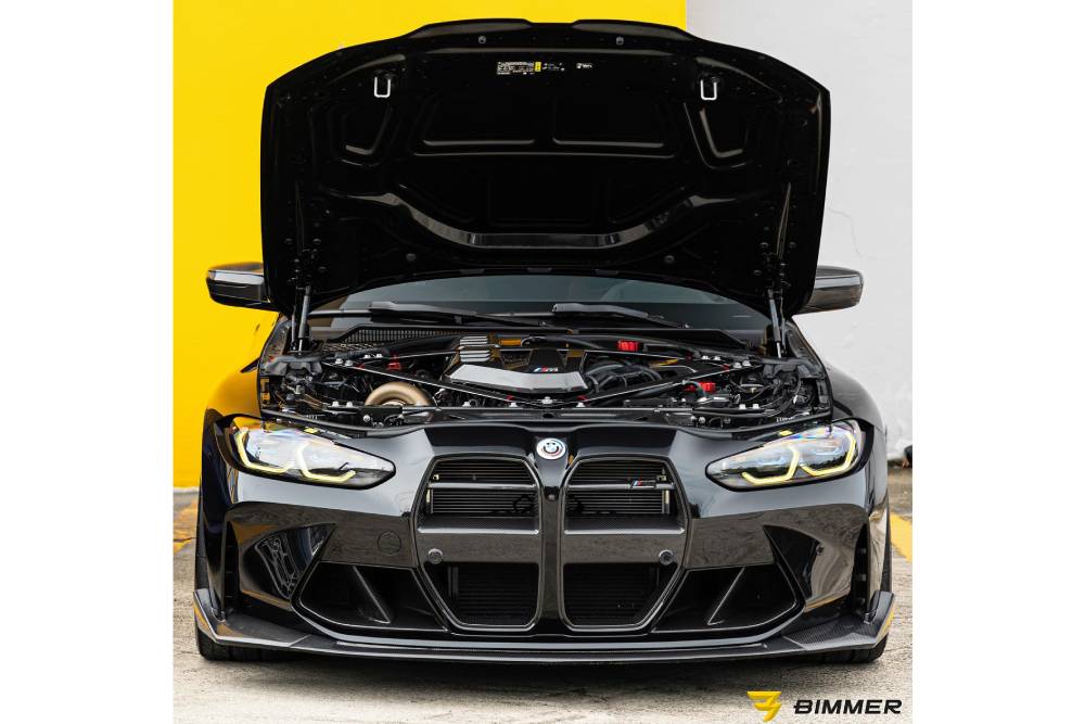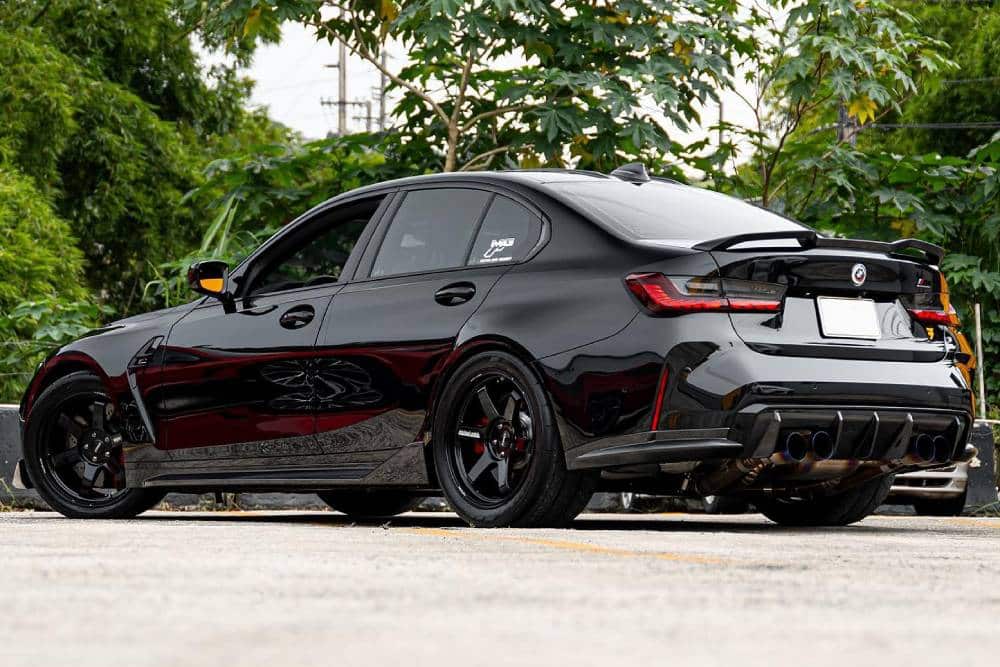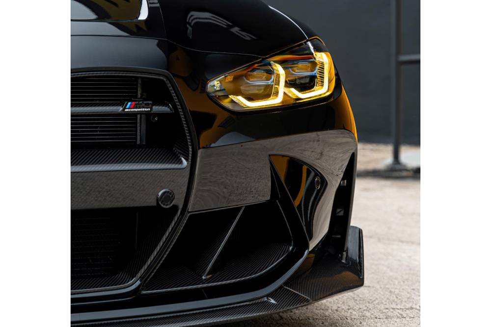 Η κατάμαυρη «Μπέμπα» δεν διαφέρει εμφανισιακά από ό,τι έχουμε συνηθίσει στην Ευρώπη. Χαμηλωμένη ανάρτηση, splitter στον εμπρός προφυλακτήρα, διαχύτης στον πίσω, ποδιές στο πλάι, αεροτομή, μεγαλύτερες ζάντες και φρένα, φαρδύτερα ελαστικά (ημισλίκ εδώ), τα κλασικά. Όμορφη πινελιά τα κίτρινα LED ημέρας, που φέρνουν αύρα M3 CS και M4 CSL, αλλά τίποτα δεν μπορεί να σε προϊδεάσει για τον «χαμό» που επικρατεί κάτω από το καπό. Εκεί δηλαδή όπου φωλιάζουν τα υπερδιπλάσια άλογα, συγκριτικά με μια εργοστασιακή M3 Competition!