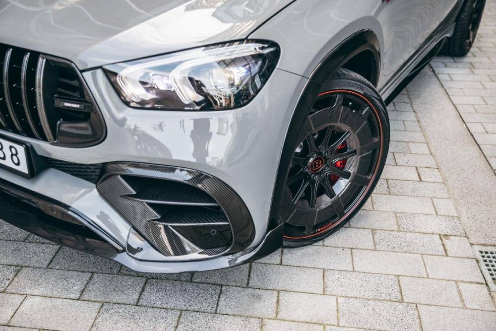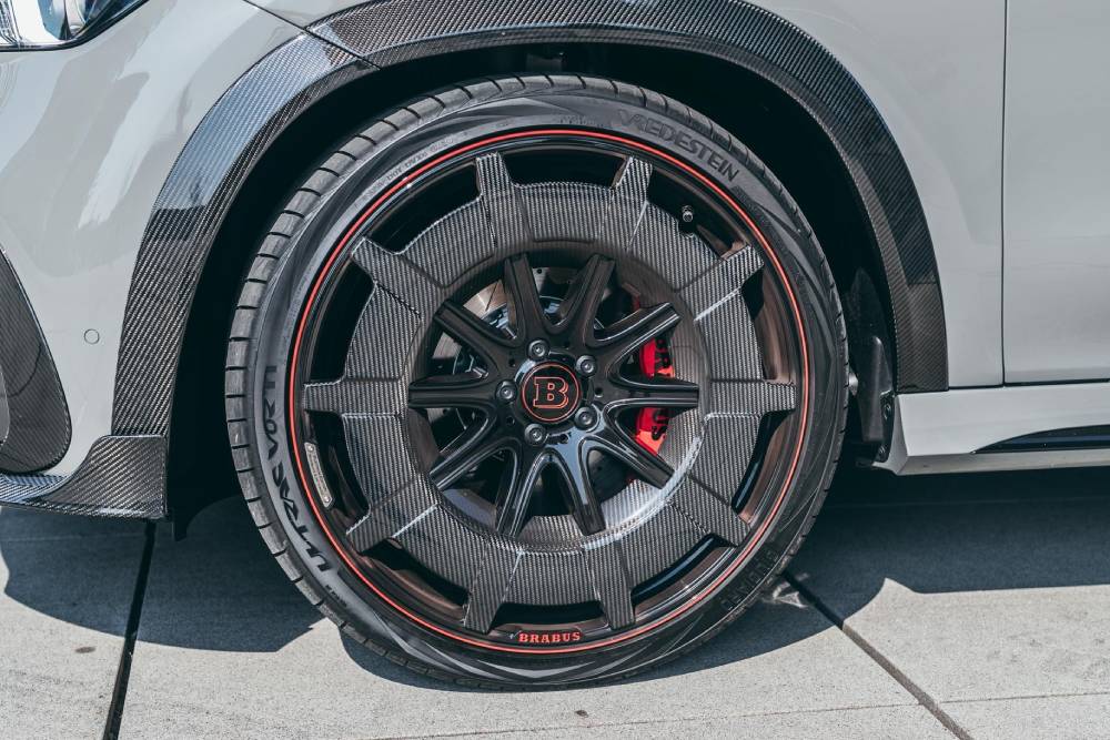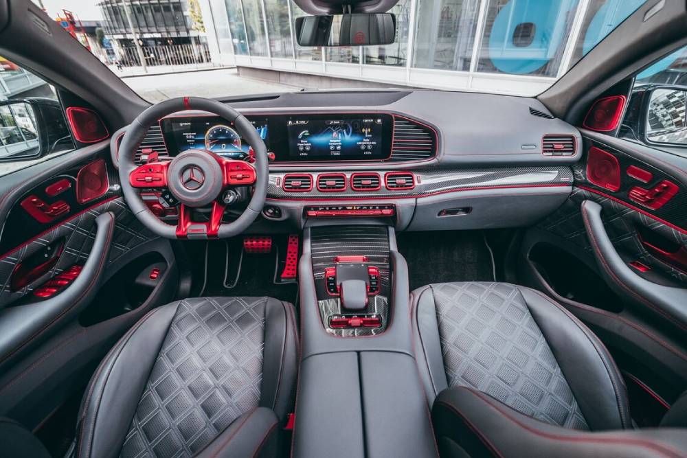 Κάτω από το καπό είναι που γίνεται ο χαμός, ο ίδιος. Ο 4λιτρος V8 twinturbo έχει υπερκυβιστεί στα 4.5 λίτρα, υπερσυμπιεζόμενος από δυο μεγαλύτερες custom τουρμπίνες της Brabus. Μαζί τους, μεγαλύτερα intercooler, νέα ψυγεία λαδιού και ανθρακονημάτινη πολλαπλή εισαγωγής, μετά δυο έξτρα ram air εκατέρωθεν της μάσκας για την ψύξη του μοτέρ. Η εξάτμιση είναι επίσης νέα και τιτανίου, ενώ δεν θα μπορούσε να λείπει η νέα ηλεκτρονική μονάδα διαχείρισης όλων των ανωτέρω. Το τελικό αποτέλεσμα είναι ένα συγκλονιστικό νούμερο 900 ίππων και 1.250 Nm ροπής, τα οποία περιορίζονται ηλεκτρονικά στα 1.054, προκειμένου να μην υπάρχουν ζητήματα με τη μετάδοση. Μιλάμε, δηλαδή, για αύξηση 261 ίππων και 250 Nm (150 με τον περιοριστή) σε σχέση με την GLE 63 S 4MATIC.