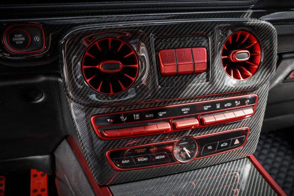 Η εμφάνιση δεν χρειάζεται ιδιαίτερη περιγραφή. Τρομακτικά επιβλητική, με το ανθρακονημάτινο body kit να απαρτίζεται από φουσκωμένα φτερά, διαχύτη, ποδιές (που φιλοξενούν και την εξάτμιση) και splitter μπροστά, ενώ μοναδική πινελιά συνιστά η φωτιζόμενη μάσκα που κάνει ακόμα πιο «τρομοκρατικό» το πρόσωπο της μεταλλαγμένης G-Class, τη νύχτα (φωτιζόμενες και οι απολήξεις της εξάτμισης).