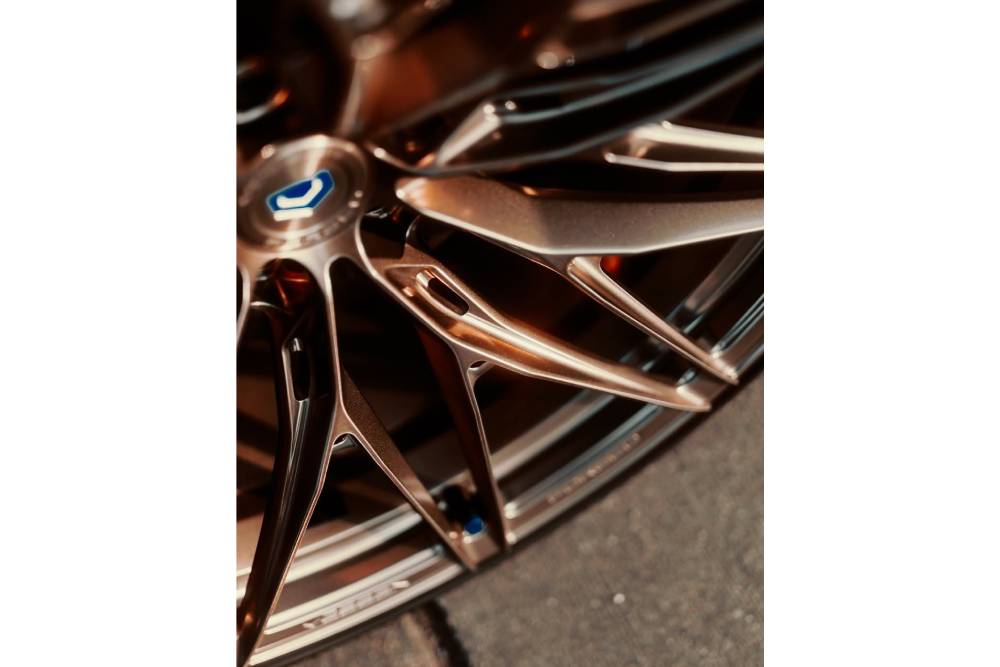 Το coilover kit φέρνει το αμάξωμα μια ανάσα από το έδαφος, κρύβοντας το πάνω μέρος του ελαστικού πίσω από τους θόλους. Ούτως ή άλλως οι 20 ίντσες των ζαντών, συν το ελάχιστο προφίλ από τα λάστιχα, καθιστούν κίνδυνο-θάνατο για την ακεραιότητα των τροχών τις λακκούβες και τα σαμάρια. Βάλτε με το μυαλό σας τί προσοχή πρέπει να δίνει ο οδηγός εδώ, που δεν υπάρχει παρά ελάχιστος «αέρας» από οτιδήποτε εξέχει ή χάσκει της ασφάλτου. Σαν να μην έφταναν αυτά, το αυτοκίνητο έχει και αεροδυναμικά βοηθήματα στους προφυλακτήρες (splitter εμπρός, διαχύτη πίσω) και τα μαρσπιέ (side skirts). Πολύ ωραίο συνολικά, μαζί με τη φανταχτερή ιριδίζουσα μεμβράνη που ντύνει το αμάξωμα, αλλά πονοκέφαλος στη σκέψη και μόνο της καθημερινής οδήγησης.