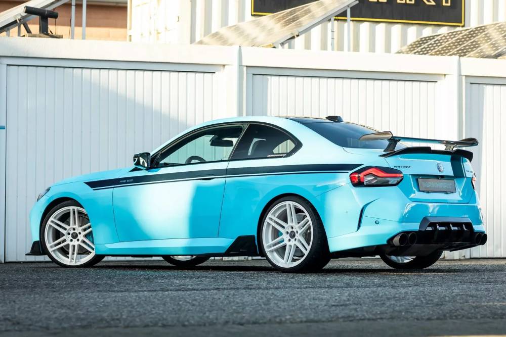 Για το λόγο αυτό, η φίρμα από το Βούπερταλ χάρισε στην M240i νέο εγκέφαλο, αναβαθμισμένη εξάτμιση, μεγαλύτερο intercooler και custom πολλαπλή εισαγωγής, εκτοξεύοντας την απόδοση του 3.0λιτρου twinturbo εν σειρά εξακύλινδρου στα 500 άλογα και τα 633 Nm! Με λίγα λόγια, αφήνει πίσω της σε δύναμη τη M2 των 480 ίππων και 600 Nm. Όσο για τη σύγκριση με την εργοστασιακή M240i; Ουδεμία (382 ίπποι και 500 Nm). Τόσο παραπανίσιο γκάζι και συνδυασμός με σύστημα τετρακίνησης, αναμφίβολα σημαίνει πως η MH2 500 είναι ταχύτερη στις επιταχύνσεις από την G87. Η M2 θέλει 4,0 δλ. για τα πρώτα 100 χλμ./ώρα (με το 8άρι Steptronic, 4,2 δλ. η χειροκίνητη), ενώ η εργοστασιακή M240i xDrive 4,1 δλ. Εύκολα αντιλαμβανόμαστε πως με 118 άλογα και 133 Nm παραπάνω, συν τις αναβαθμίσεις σε ανάρτηση-τροχούς, η βελτιωμένη θα χρειάζεται σημαντικά λιγότερο από 4,0 δλ. για το 0-100 χλμ./ώρα (στα 3,6-3,7 δλ. υπολογίζεται). Όσο για την τελική; Δεδομένο ότι ο κόφτης των 250 χλμ./ώρα έχει «χαιρετήσει».