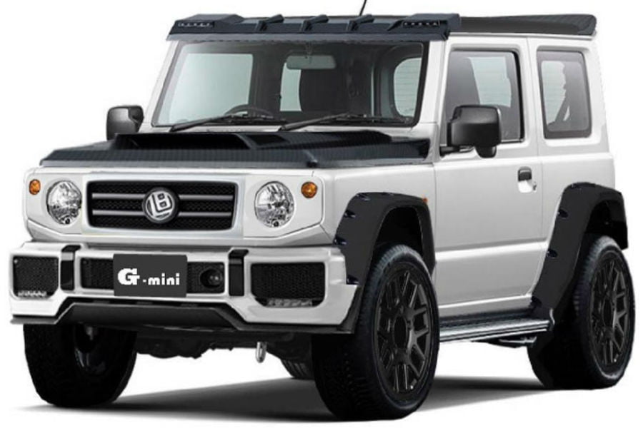 Το Liberty Walk G-mini! Ένα Jimny, δηλαδή, τροποποιημένο (κατάλληλα ή όχι, εσείς θα το κρίνετε) ώστε να φέρνει στο γερμανικό 4×4. Ο εμπρός προφυλακτήρας και η μάσκα έχουν αντικατασταθεί με ογκοδέστερα και πιο «στρατιωτικά», οι θόλοι των τροχών είναι πιο έντονοι και έχουν αποκτήσει προσθήκες, οι τροχοί θυμίζουν τους αντίστοιχους που προσφέρει η Brabus, ενώ υπάρχουν και οι κατάλληλες πινελιές για να θυμίζουν την εξειδίκευση του Ιάπωνα βελτιωτή στις «Fast and Furious» κατασκευές. Το καπό είναι κατασκευασμένο από ανθρακονήματα και φιλοξενεί μια ευμεγέθη εισαγωγή για τον κινητήρα, ενώ και το κάλυμμα της οροφής αποτελείται από το ίδιο υλικό, φιλοξενώντας παράλληλα ένα μικρό spoiler.