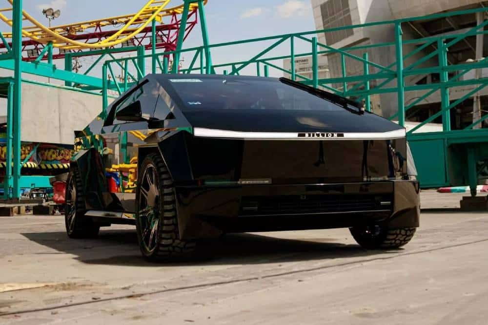 Η μεξικανική εταιρία Billion Group θέλησε να φτιάξει το πιο απειλητικό «Κυβερνοφορτηγό» στον πλανήτη, και εκ του αποτελέσματος μάλλον το πέτυχε. Καταρχάς, επέλεξαν το πιο κατάλληλο χρώμα: ένα ωραιότατο κατάμαυρο, που ντύνει κάθε σπιθαμή από τα σχεδόν 5,7 μέτρα μήκους, 2+ μέτρων πλάτους και 1,70+ μ. ύψους Cybertruck (πάνω από 3,1 μέτρα το μεταξόνιο, να είμαστε ολοκληρωμένοι στις διαστάσεις). Η ανάρτηση χαμηλώνει, για να δώσει ακόμα περισσότερη ένταση στο look που αναβαθμίζουν οι 26άρες ζάντες, οι οποίες ωστόσο περιβάλλονται από τρακτερωτά λάστιχα. Εξάλλου, αν θέλει ο οδηγός μπορεί να αυξήσει την απόσταση από το έδαφος μέσω της αερανάρτησης, οπότε το αυτοκίνητο δεν περιορίζεται στην άσφαλτο.