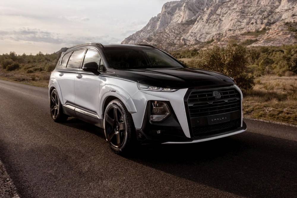 Με την ονομασία Carlex Urban Edition, το κορεατικό SUV περιγράφεται ως «ένα μοναδικό αυτοκίνητο, που συνδυάζει urban φινέτσα με σπορ στοιχεία». Χειροπιαστά, σημαίνει πως το αυτοκίνητο είναι τόσο αλλαγμένο εμπρός που μετά βίας καταλαβαίνεις ότι είναι Santa Fe. Προφυλακτήρας και μάσκα αντικαταστάθηκαν με νέα, που θυμίζουν στόμα έτοιμο να κατασπαράξει τα πάντα στο διάβα του. Η διχρωμία μαύρου-άσπρου δημιουργεί ένα μοτίβο χαυλιόδοντων στο περίγραμμα της γρίλιας, εντείνοντας την αίσθηση του αρπακτικού στο μεγάλο Hyundai. Στο ίδιο μήκος κύματος οι νέες ζάντες των 20 ιντσών (σε ελαστικά 255/45) και οι αποστάτες που τις συνοδεύουν, προκειμένου να γεμίζουν τα φουσκωμένα φτερά.