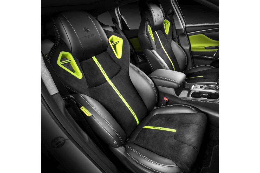 Στο εσωτερικό κυριαρχούν οι δερμάτινες επενδύσεις και τα μπάκετ καθίσματα, που συνδυάζονται με γερές δόσεις alcantara και έντονα χρώματα (κατόπιν παραγγελίας). Η αλήθεια είναι πως, κρίνοντας από το εξωτερικό, θα περίμενε κάποιος περισσότερα εντός της καμπίνας. Για να μετατραπεί, τώρα, το Santa Fe σε «μπαμπούλα» των Hyundai N (και γενικότερα), απαιτούνται 7.995 ευρώ.