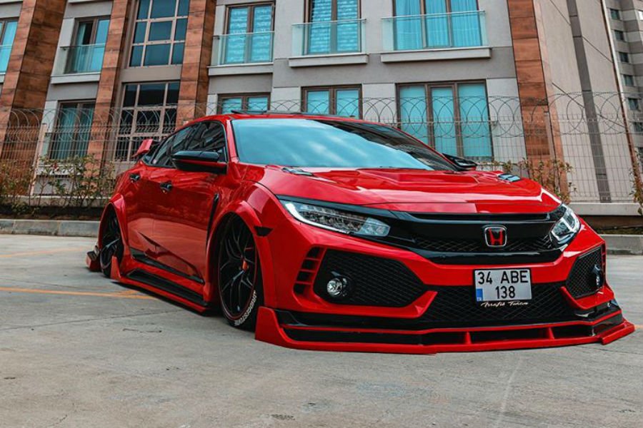 Το «σαυροποιημένο» Type R εμφανίστηκε στον λογαριασμό Instagram του israfil__turan και είναι μόνο ένα από τα «Τάπερ» του είδους στη γείτονα χώρα. Πολλοί τοπικοί tuners εφαρμόζουν την ίδια ακριβώς τακτική, προσθέτοντας πλαστικό και πολυεστέρα χαμηλά στο αμάξωμα, με παράλληλη τοποθέτηση ελατηρίων χαμηλώματος. Όπως βλέπουμε, το body kit αποτελείται από προσθήκες στους προφυλακτήρες και τα μαρσπιέ.