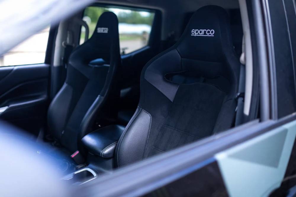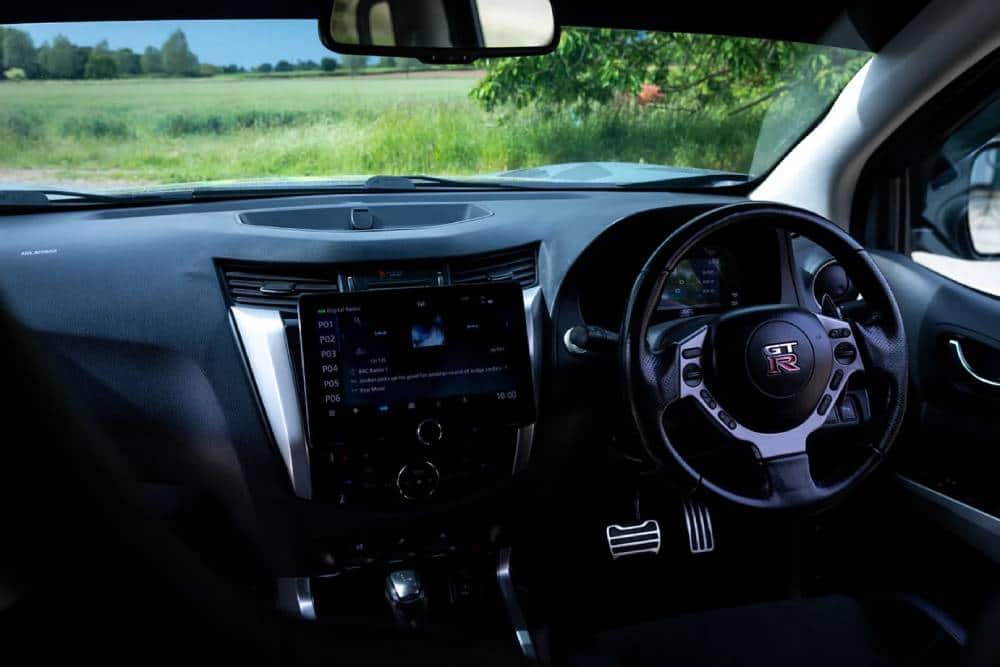 Το εσωτερικό δεν θα μπορούσε να παραμείνει εργοστασιακό, ιδίως από τη στιγμή που το ιαπωνικό αγροτικό μοιράζεται τόσα σημεία με το GT-R. Το τιμόνι από R35 φροντίζει να βάλει τον οδηγό στο κλίμα, όπως και τα μπάκετ της Sparco. To aftermarket σύστημα πολυμέσων της Kenwood φροντίζει για την απαραίτητη high tech νότα, αλλά παράλληλα παρέχει πληροφορίες και για τις λειτουργίες του αυτοκινήτου. Κάτι που χρειάζεσαι, όταν κάτω από το καπό φωλιάζει ένα υπερκυβισμένο μοτέρ GT-R.