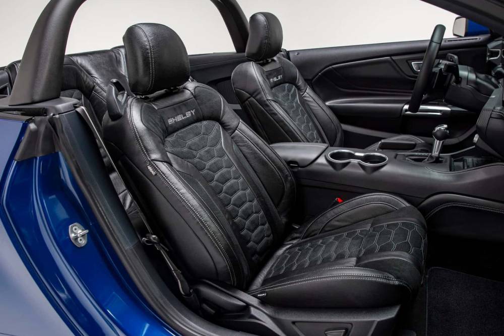 Στα μηχανικά μέρη τώρα, ξεκινάμε από τα μεγαλύτερα φρένα και τη ρυθμιζόμενη ανάρτηση. Προχωρώντας στα πιο «βαριά», ανοίγουμε το αλουμινένιο καπό και θαυμάζουμε τον 5.0 V8 Coyote να απολαμβάνει την παρέα ενός θηριώδους κομπρέσορα. Μια συνεργασία που σχεδόν διπλασιάζει την ισχύ σε σχέση με τα εργοστασιακά δεδομένα, καθώς από τα 480 άλογα της GT η Super Snake κάνει «raise» στα 830! Με 350 ίππους παραπάνω δεν γινόταν η μετάδοση να μείνει ανεπηρέαστη, με τη Shelby να τοποθετεί ενισχυμένο μπλοκέ διαφορικό και ημιαξόνια. Τα κιβώτια πάντως (6άρι χειροκίνητο ή 10άρι αυτόματο) δεν έχουν αλλαγές. Εναλλακτικά, για όποιον θέλει το look αλλά όχι και τόση δύναμη, προσφέρεται μόνο το οπτικό πακέτο (δίχως τη ρυθμιζόμενη αεροτομή όμως).