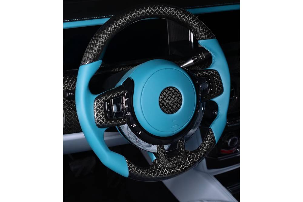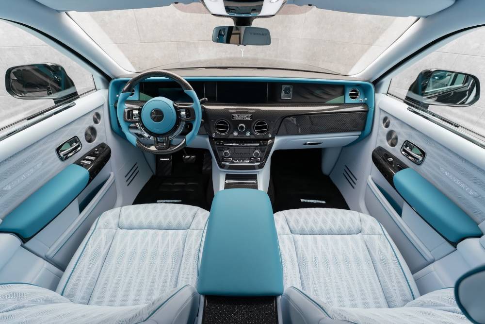 Τα παραέχει, για να ακριβολογούμε, καθώς η Mansory του έδωσε και κατάλαβε. Η βρετανική λιμουζίνα δέχτηκε τις περιποιήσεις των Γερμανών τόσο στο αμάξωμα, όσο και την ανάρτηση, έχοντας γίνει πλέον πρακτικά «ξύστρα» με τον νέο εμπρός προφυλακτήρα και το splitter, που ακουμπάει την άσφαλτο. Οι 24άρες ζάντες και η χαμηλωμένη ανάρτηση, που εκμηδενίζουν το κενό μεταξύ ελαστικού και θόλου, κλέβουν τις εντυπώσεις. Η αερανάρτηση διαθέτει νέο λογισμικό προκειμένου να κατεβάσει τόσο την απόσταση από το έδαφος, αλλά και να σκληρύνει την απόσβεση ώστε να μη χτυπάνε διαρκώς οι τροχοί στο εσωτερικό των φτερών. Πανεύκολα αντιλαμβανόμαστε πάντως, πως πλέον η Ghost προσφέρει ένα μέρος μόνο από την παγκοσμίου κλάσης άνεση και ποιότητα κύλισης, που χαρακτηρίζουν τα αυτοκίνητα με το «Spirit of Ecstasy» στη μάσκα.