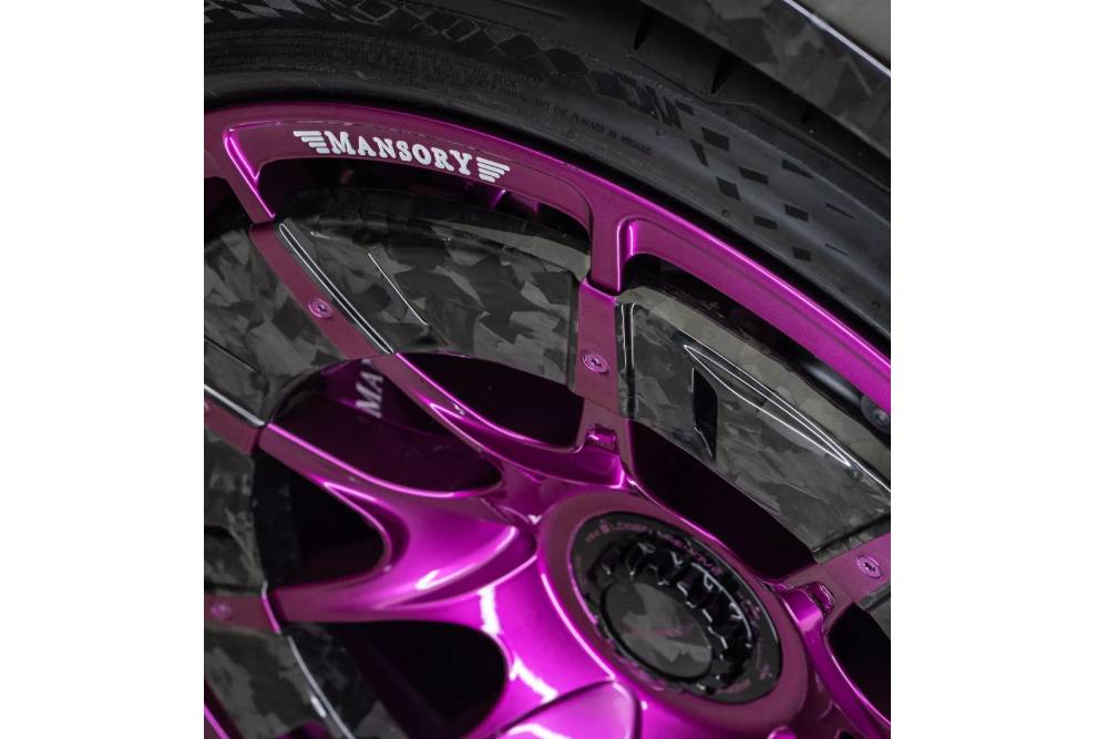H P9LM 900 EVO, όπως είναι η επίσημη ονομασία της φτιαγμένης Turbo S, φοράει ένα ακραίο bodykit εξ’ ολοκλήρου από ανθρακονήματα, σε συνδυασμό με μωβ πινελιές στις ζάντες και τη ρυθμιζόμενη αεροτομή. Μπροστά βρίσκουμε τον ανασχεδιασμένο προφυλακτήρα μπροστά με μεγαλύτερες εισαγωγές και splitter, ακροπτερύγια στο πλάι και νέο καπό, ενώ στο προφίλ τα βλέμματα σταματούν αφενός στις σφυρήλατες ζάντες (21 ιντσών μπροστά – 22 πίσω, με ελαστικά 255/35 και 335/25 αντίστοιχα), αφετέρου στις αεροδυναμικές προσθήκες των φτερών και μαρσπιέ. Πίσω δεσπόζει ο τεράστιος διαχύτης, η τριπλή εξάτμιση στο κέντρο και η ακόμα μεγαλύτερη φτερούγα, ενώ όσοι πιστεύουν ότι θα δυσκολευτούν με το έξτρα πλάτος στα στενά της πόλης, η Mansory προσφέρει την επιλογή ενός bodykit χωρίς τις προεκτάσεις των θόλων. Ή παίρνεις βελτιωμένη 911 Turbo S, όμως, ή δεν παίρνεις.
