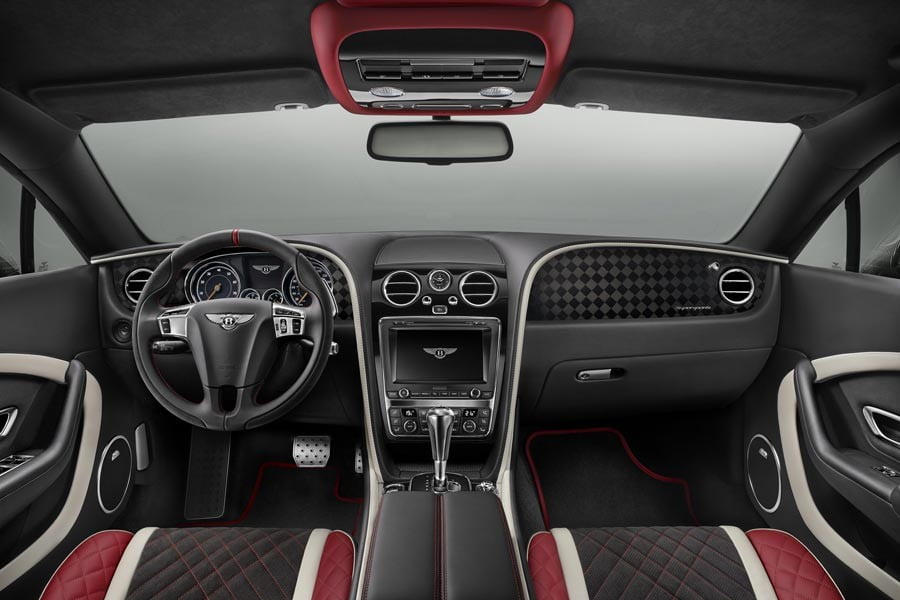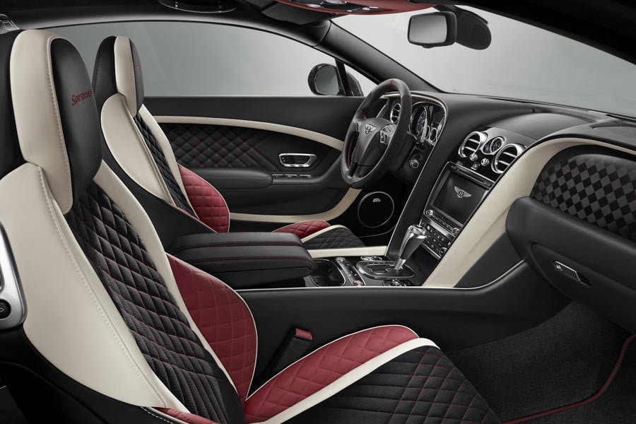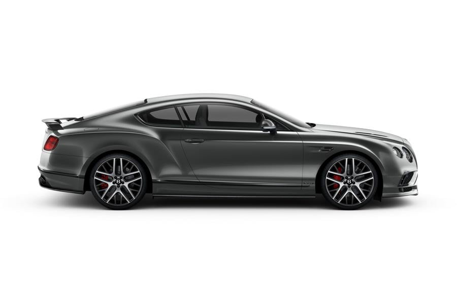 Στο πίσω μέρος ξεχωρίζουν τα σκουρόχρωμα φώτα, ενώ υπάρχει μια προαιρετική αγωνιστικού τύπου σταθερή αεροτομή, που συνδυάζεται με ένα διαφορετικό εμπρόσθιο σπόιλερ. Στο εσωτερικό, η Continental Supersports διαθέτει ειδικές επενδύσεις σε λευκό, κόκκινο και μαύρο από δέρμα και αλκαντάρα, αλλά και πανάκριβες carbon επενδύσεις πάνω στο ταμπλό.