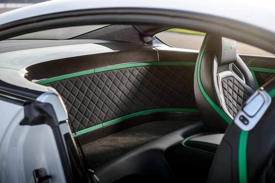 Στο εσωτερικό έχει αφαιρεθεί το πίσω κάθισμα, τα εμπρός είναι χειροποίητα από ανθρακόνημα με επενδύσεις αλκαντάρα, ενώ κυριαρχούν τα μεγάλα τμήματα από ανθρακόνημα σε πολλές επιφάνειες της καμπίνας.