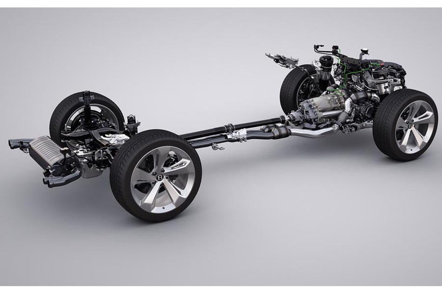 Η Bentley Bentayga βασίζεται στην τροποποιημένη πλατφόρμα MLB-Evo του ομίλου Volkswagen, στην οποία «χτίστηκε» και το νέο Audi Q7. Η πλήρως ανεξάρτητη αερανάρτησή της είναι ηλεκτρονικά ελεγχόμενη, με τέσσερις διαφορετικές ρυθμίσεις ύψους, ενώ το εκτός δρόμου σύστημα προσφέρεται προαιρετικά με έως οκτώ διαφορετικές ρυθμίσεις. Για την επαφή με το δρόμο φροντίζουν οι στάνταρ ζάντες διαμέτρου 20 ιντσών με ελαστικά 275/50 R20 και προαιρετικά προσφέρονται ζάντες 21 και 22 ιντσών.