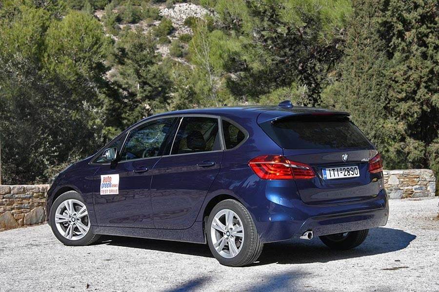 Παρά το αμάξωμα ενός όγκου, το οποίο για BMW είναι πρωτόγνωρο, για την κατηγορία όμως δεδομένο, οι σχεδιαστές της μάρκας κατάφεραν να χαρίσουν το δικό τους στυλ στη Σειρά 2 Active Tourer. Το εμπρός μέρος παραμένει τυπικό δείγμα γραφής, για μοντέλο της γερμανικής μάρκας. Μεγάλες γρίλιες, προφυλακτήρας με εισαγωγές αέρα, σχιστά φώτα με διπλούς στρογγυλούς προβολείς και καπό με έντονα ανάγλυφη επιφάνεια, αφήνουν το στίγμα τους. Στο πλάι κυριαρχεί το έντονο νεύρο που διατρέχει το αμάξωμα από τα εμπρός φτερά και περνά από τις χειρολαβές των θυρών για να καταλήξει στα πίσω φώτα. Αυτά είναι και πάλι γνώριμης αισθητικής, καθώς δεν απέχουν σε εμφάνιση από τα φώτα που θα συναντήσουμε σε άλλα μοντέλα της μάρκας, με το παρμπρίζ να παραπέμπει σε Σειρά 1 και το χαμηλό μέρος του προφυλακτήρα σε Σειρά 2. Σε γενικές γραμμές έχουμε ένα κομψό σύνολο, το οποίο παραπέμπει ξεκάθαρα σε BMW (ακόμη και από το πλάι που δεν έχεις ξαναδεί κάτι τέτοιο σε… BMW) και καταφέρνει ως ένα βαθμό να κρύψει τις αυξημένες εξωτερικές διαστάσεις του (4.323x1.800x1.550 χλστ.), όντας ταυτόχρονα εξαιρετικά αεροδυναμικό (αεροδυναμικός συντελεστής Cd 0.26).