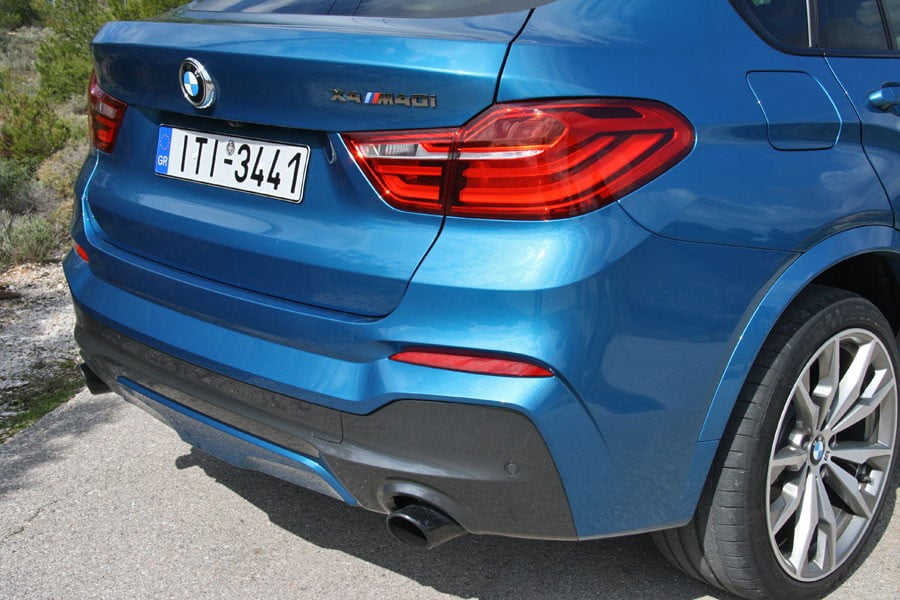 Η BMW X4 είναι ένα αυτοκίνητο που δεν περνά απαρατήρητο, πόσο μάλλον στην συγκεκριμένη έκδοση M40i, η οποία έχει να επιδείξει μία σειρά από αισθητικές αλλαγές που την κάνουν ακόμη πιο επιθετική εμφανισιακά. Συγκεκριμένα ο εμπρός προφυλακτήρας έχει ανασχεδιαστεί και διαθέτει μεγαλύτερους αεραγωγούς, ενώ διαφοροποιημένος είναι και ο πίσω, μεγάλο μέρος του οποίο είναι σε μαύρο χρώμα, το οποίο έρχεται σε αρμονία με τις επίσης μαύρες απολήξεις εξάτμισης. Στα φτερά εμπρός υπάρχει το σήμα «M», ενώ στο πίσω μέρος αναγράφεται ο κωδικός του μοντέλου συνοδεία φυσικά του θρυλικού γράμματος του M Division. Οι αλλαγές ολοκληρώνονται από τις ζάντες αλουμινίου 20 ιντσών, οι οποίες προέρχονται φυσικά από το M Division. Όλες αυτές οι αλλαγές συνθέτουν ένα εξαιρετικό σε εμφάνιση σύνολο, το οποίο πάντως δεν κρύβει τις θηριώδεις διαστάσεις του. Συγκεκριμένα το μήκος του είναι στα  4.671 χλστ. το πλάτος του στα 1.901 χλστ. και το ύψος του στα 1.624 χλστ.