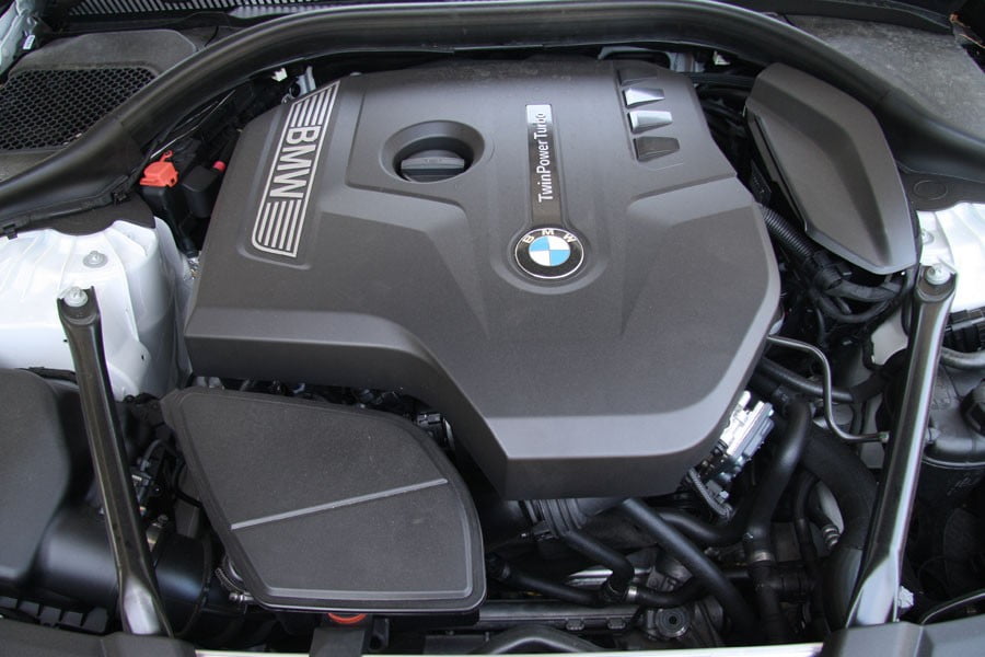 Η νέα γενιά της 530i αποκτά τον καινούργιο 2λιτρο Twin Power Turbo κινητήρα βενζίνης της BMW, με 252 άλογα ισχύος και 350 Nm ροπής διαθέσιμα μόλις από τις 1.450 στροφές. Το μοτέρ αυτό συνδυάζεται με το αυτόματο κιβώτιο Steptronic των 8 σχέσεων (υπάρχουν και paddlesπίσω από το τιμόνι), χωρίς να υπάρχει δυνατότητα επιλογής χειροκίνητου κιβωτίου. Στην πράξη, ο νέος κινητήρας εντυπωσιάζει με την εξαιρετικά ραφιναρισμένη λειτουργία του, την απουσία turbo lag, αλλά και σε συνδυασμό με το γρήγορο κιβώτιο, την άμεση απόκρισή του στο πάτημα του πεντάλ του γκαζιού. Οι επιδόσεις είναι εξαιρετικές, με το 0-100 χλμ./ώρα να επιτυγχάνεται σε μόλις 6,2 δευτερόλεπτα. Στο πεδίο της κατανάλωσης, ο οδηγός μπορεί χρησιμοποιώντας την επιλογή EcoPro του οδηγικού set-up (επεμβαίνει σε κινητήρα, κιβώτιο, λειτουργία κλιματισμού κ.λπ.) να μειώσει αρκετά τις απαιτήσεις της 530i σε καύσιμο, αν και η μέση τιμή της δοκιμής μας ήταν στα υψηλά, αλλά λογικά για τα άλογα του μοτέρ, 9,7 λτ./100 χλμ.
