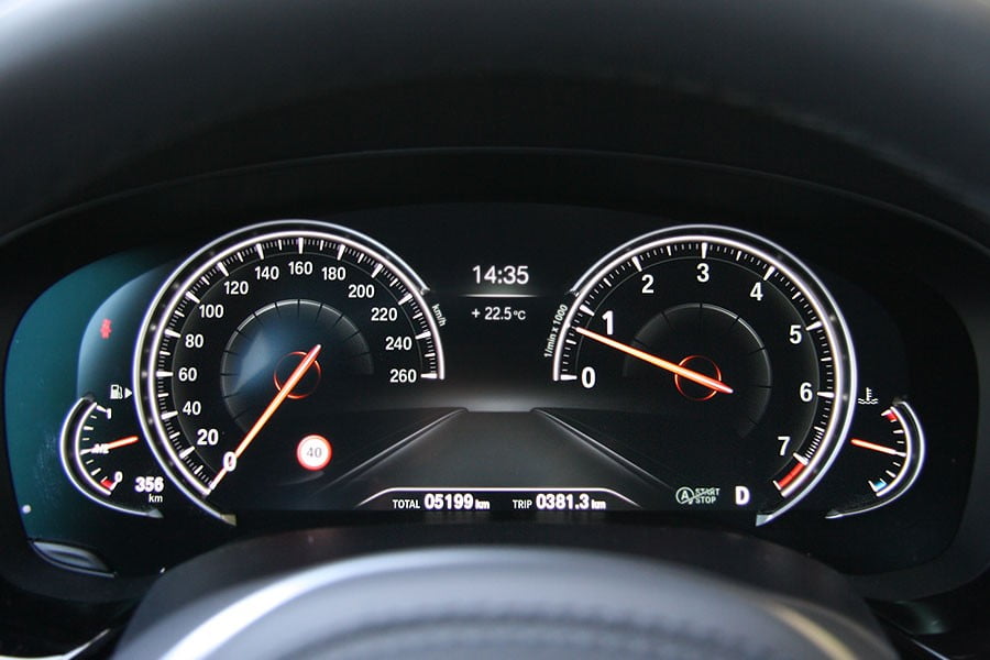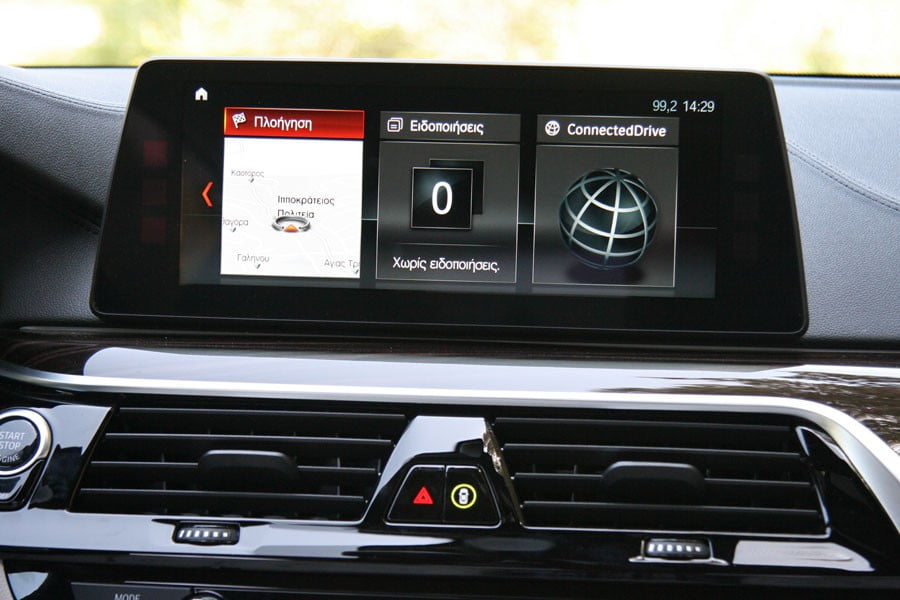 Το πρώτο στοιχείο που ξεχωρίζει σε αυτή την «5άρα» είναι λοιπόν τα προηγμένα τεχνολογικά συστήματα που προσφέρει και εμείς, είχαμε την τύχη να τα δοκιμάσουμε στο σύνολό τους στο μοντέλο της δοκιμής. Πρώτο και πιο ενδιαφέρον εξ αυτών είναι το σύστημα που «οδηγεί» μόνο του το αυτοκίνητο, διατηρώντας τη Σειρά 5 μέσα στη λωρίδα της κυκλοφορίας της χωρίς καν ο οδηγός να πιάσει το τιμόνι (κάθε 6-8 δλ. το σύστημα τον καλεί να το ακουμπήσει, απλά για να «βεβαιωθεί» για την παρουσία του). Μαζί με το ενεργό cruisecontrol, η Σειρά 5 μπορεί να σταματήσει και να ξαναξεκινήσει αυτόματα και χωρίς ο οδηγός να πατήσει το φρένο ή το γκάζι. Πολύ ενδιαφέρον έχει και το σύστημα BMW Remote Parking, μέσω του οποίου το αυτοκίνητο εκκινεί και πραγματοποιεί πορεία εμπρός-πίσω χωρίς ο οδηγός να είναι καν μέσα για να υποβοηθήσει στο μπες-βγες σε κάθετο παρκάρισμα. Η όλη διαδικασία χειρίζεται από απόσταση μέσω του «έξυπνου» κλειδιού της BMW (Δείτε εδώ το εντυπωσιακό αυτό σύστημα στην πράξη). Στο ίδιο υψηλό τεχνολογικό επίπεδο βρίσκεται και η δυνατότητα χειρισμού του συστήματος πολυμέσων μέσω ειδικών χειρονομιών από απόσταση, αλλά και η δυνατότητα ασύρματης φόρτισης smartphones (και του κλειδιού) στο ειδικό πάνελ του τούνελ της κονσόλας.