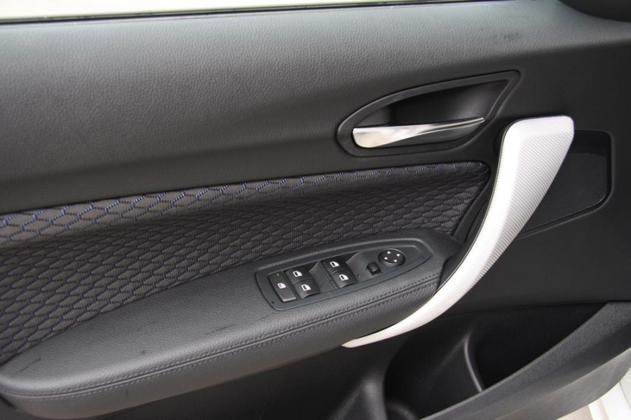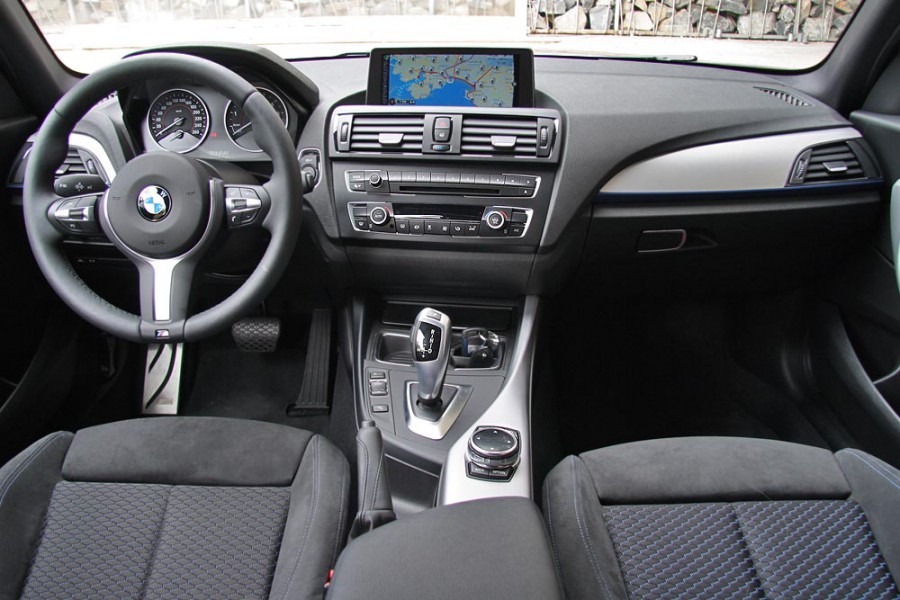 Το εσωτερικό της 116i είναι όμορφο αισθητικά και ιδιαίτερα ποιοτικό όπως άλλωστε συμβαίνει σε όλα τα αυτοκίνητα της εταιρείας. Στην συγκεκριμένη έκδοση με το πακέτο M Sport Package, το εσωτερικό αποκτά πλέον και πιο σπορτίφ ατμόσφαιρα μέσω λεπτομερειών, όπως είναι το ιδιαίτερα καλαίσθητο 3άκτινο τιμόνι με νάπα δέρμα, τα ημιμπάκετ καθίσματα με ηλεκτρικές ρυθμίσεις και τις μπλε ραφές και οι όμορφες αλουμινένιες επενδύσεις. Η θέση οδήγησης παραπέμπει σε αμιγώς σπορ κατασκευή ως προς το ύψος και τις αποστάσεις της προς τα βασικά χειριστήρια με τον οδηγό ωστόσο να αντιμετωπίζει κάποια προβλήματα με την ορατότητα στο πίσω μέρος. Οι χώροι είναι καλοί για 4 επιβάτες αφού το εσωτερικό πλάτος του πίσω καθίσματος και το υψηλό τούνελ της μετάδοσης δεν επιτρέπουν την άνετη μετακίνηση και ενός τρίτου επιβάτη, ενώ ο χώρος αποσκευών έχει όγκο 360 λίτρων, τιμή που το κατατάσσει στο μέσο όρο της κατηγορίας.
