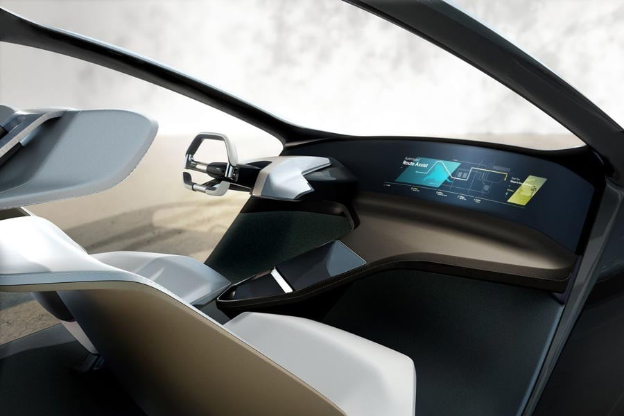 Εξωτερικά μιλάμε για ένα ακραίο, φουτουριστικό σχήμα, με κρυμμένους τροχούς, χωρίς πόρτες και γυάλινες επιφάνειες, με λεπτά LED φώτα και το μόνο που θυμίζει BMW να είναι το σήμα.