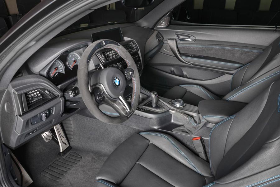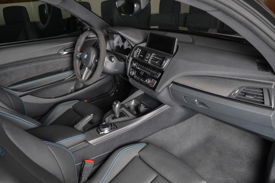 Έτσι λοιπόν ο αγοραστής μιας BMW M2 από το Αμπού Ντάμπι την παρήγγειλε με διάφορα “καλούδια” της M Performance, τα οποία συναντώνται στο αμάξωμα αλλά και στο εσωτερικό. Εξωτερικά, η εικονιζόμενη M2 “φοράει” αεροδυναμικό κιτ από ανθρακόνημα, όπως είναι το εμπρός σπόιλερ, τα πλαϊνά στα μαρσπιέ, ο διαχύτης στον πίσω προφυλακτήρα και η αεροτομή στο τελείωμα του καπό, συν τους καθρέπτες. Την εξωτερική αλλά και ηχητική αναβάθμιση ενισχύουν με την σειρά τους οι εξατμίσεις της Akrapovic.